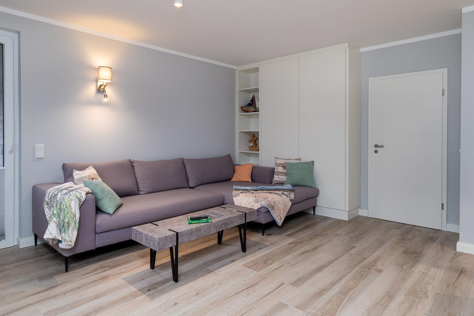 Zusätzlich kann bei Verfügbarkeit ein weiteres Schlafzimmer und ein Bad mit Sauna im Souterrain dazugemietet werden.