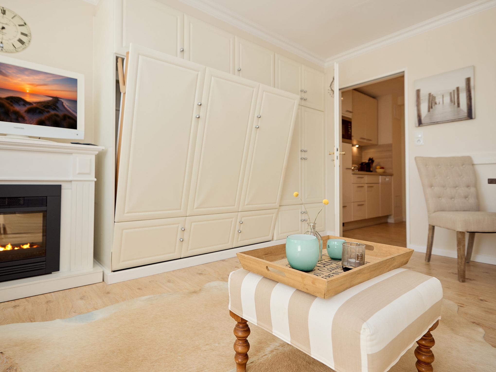 Es erwartet Sie ein Bad mit Badewanne, eine kleine Küchenzeile mit Geschirrspüler, Ceranfeld, Mikrowelle und Espressomaschine. Ein komfortabeles Schrankbett bietet erholsamen Schlaf für bis zu 2 Personen. Als Highlight bietet diese Unterkunft einen Eelektrokamin, dessen Wärme Sie auf unserer gemütlichen Couch genießen können. Soll es doch mal eine kleine Abkühlung sein? Kein Problem, es gibt selbstverständlich einen Balkon.