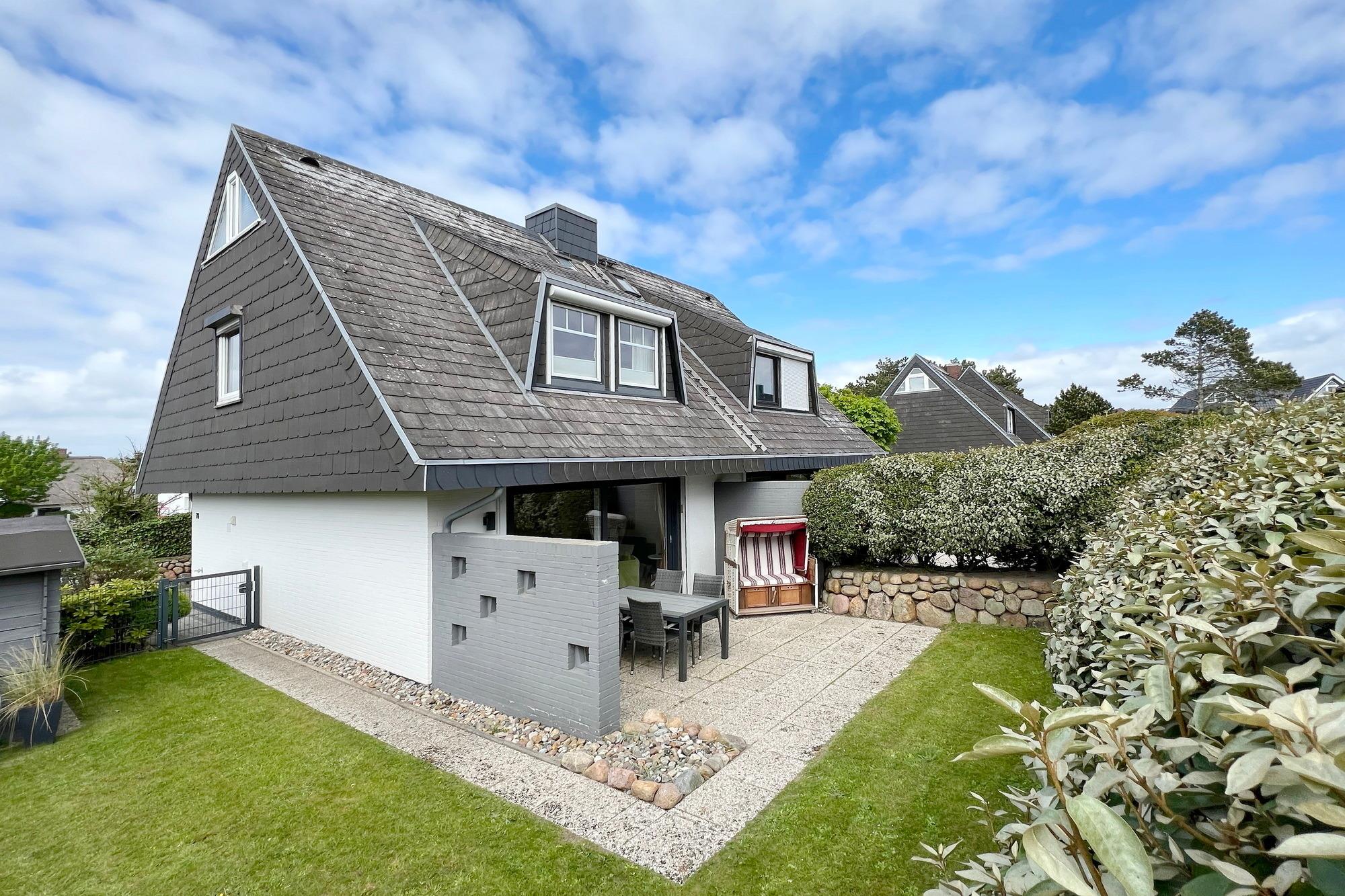 Gemütliches Ferienhaus in Westerland mit Garten, Terrasse und Strandkorb für entspannte Urlaubstage.