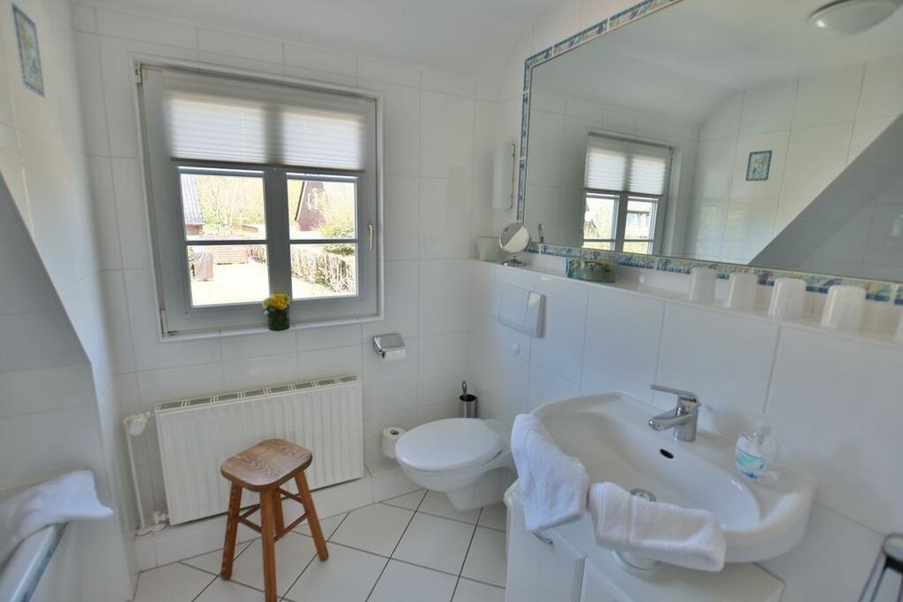 Ein Duschbad und ein Wannenbad stehen zur Verfügung. Ein privater Stellplatz für Ihren PKW gehört zum Ferienhaus.