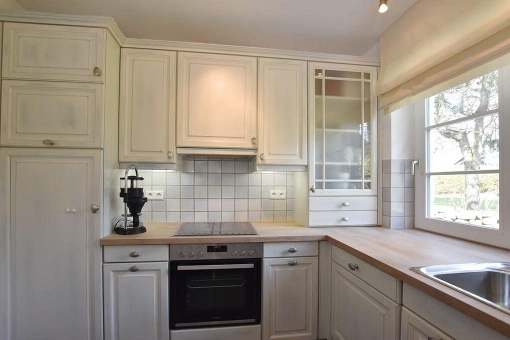 sind ein Ceranfeld, Backofen, Spülmaschine, Mikrowelle, Kühlschrank mit Tiefkühlfach und Waschmaschine vorhanden.