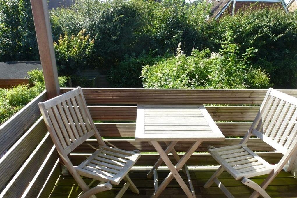 Der Außenbereich des Ferienhauses lädt zum Verweilen ein. Auf der Terrasse oder dem Balkon können Sie die Sonne genießen und im Garten entspannen. Ein Parkplatz steht ebenfalls zur Verfügung.