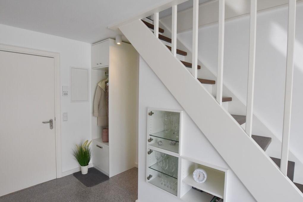 Diese gut geschnittene 3-Zimmer-Ferienwohnung ( OG / SB ) befindet sich nur einen Katzensprung vom nächsten Strandübergang entfernt. Wohnraum mit Sofa und Loungesesseln, offene Küche mit Nespressomaschine, Essplatz und Balkon, Masterbedroom mit zweitem TV und Tischlereinbauten. Duschbad mit WC und Waschbecken. Im Spitzboden befindet sich ein weiterer Raum mit 2 Betten die auch zu einem Doppelbett zusammengestellt werden können und ein zweites Duschbad. Ein TV-Gerät, Blue-Ray-Player und eine Stereoanlage mit iPod-Dockingstation und Bluetooth stehen dort ebenfalls zur Verfügung. Zur Wohnanlage gehört Waschmaschine und Trockner ( mit Münzeinwurf ) zur gemeinschaftlichen Nutzung.