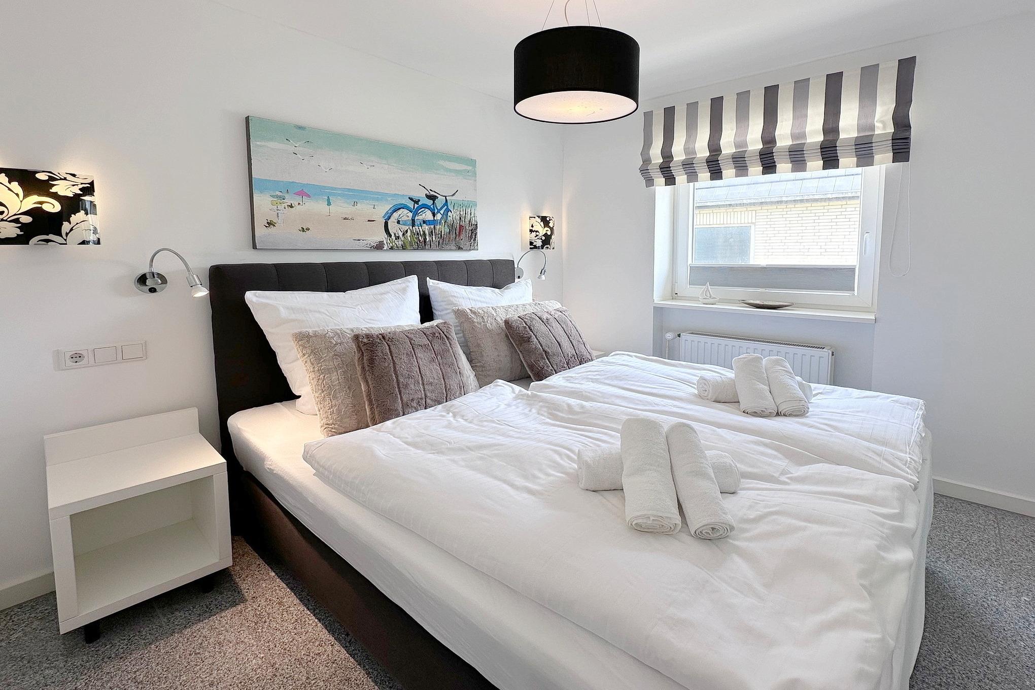 Die Wohnung zeichnet sich vor allem durch Ihre strandnahe Lage aus mit kurzen Wegen zur Innenstadt und den Kureinrichtungen. Die Grundausstattung Bettwäsche und Handtücher ist ab 7 ÜN im Preis enthalten