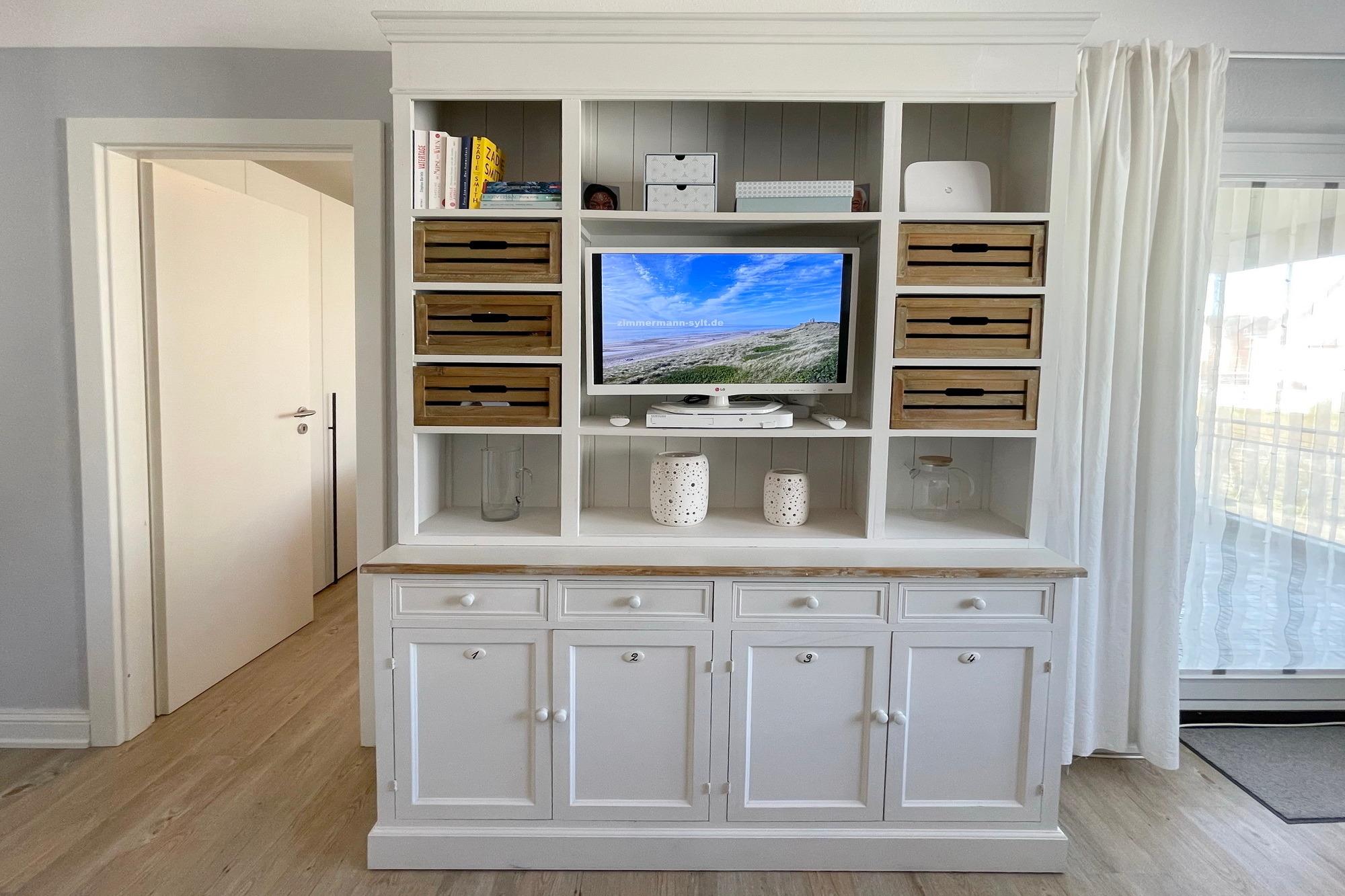 Der Wohnraum verfügt über eine gemütliches Sofa zum Relaxen, einen Essplatz, Kabel-Flachbild-TV und einer offenen Küchenzeile