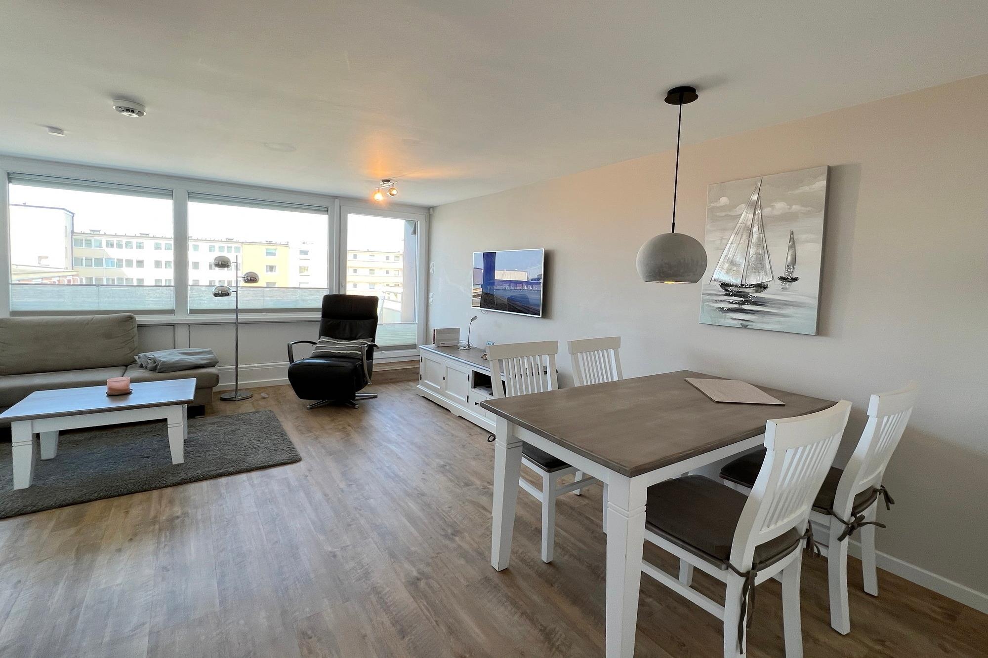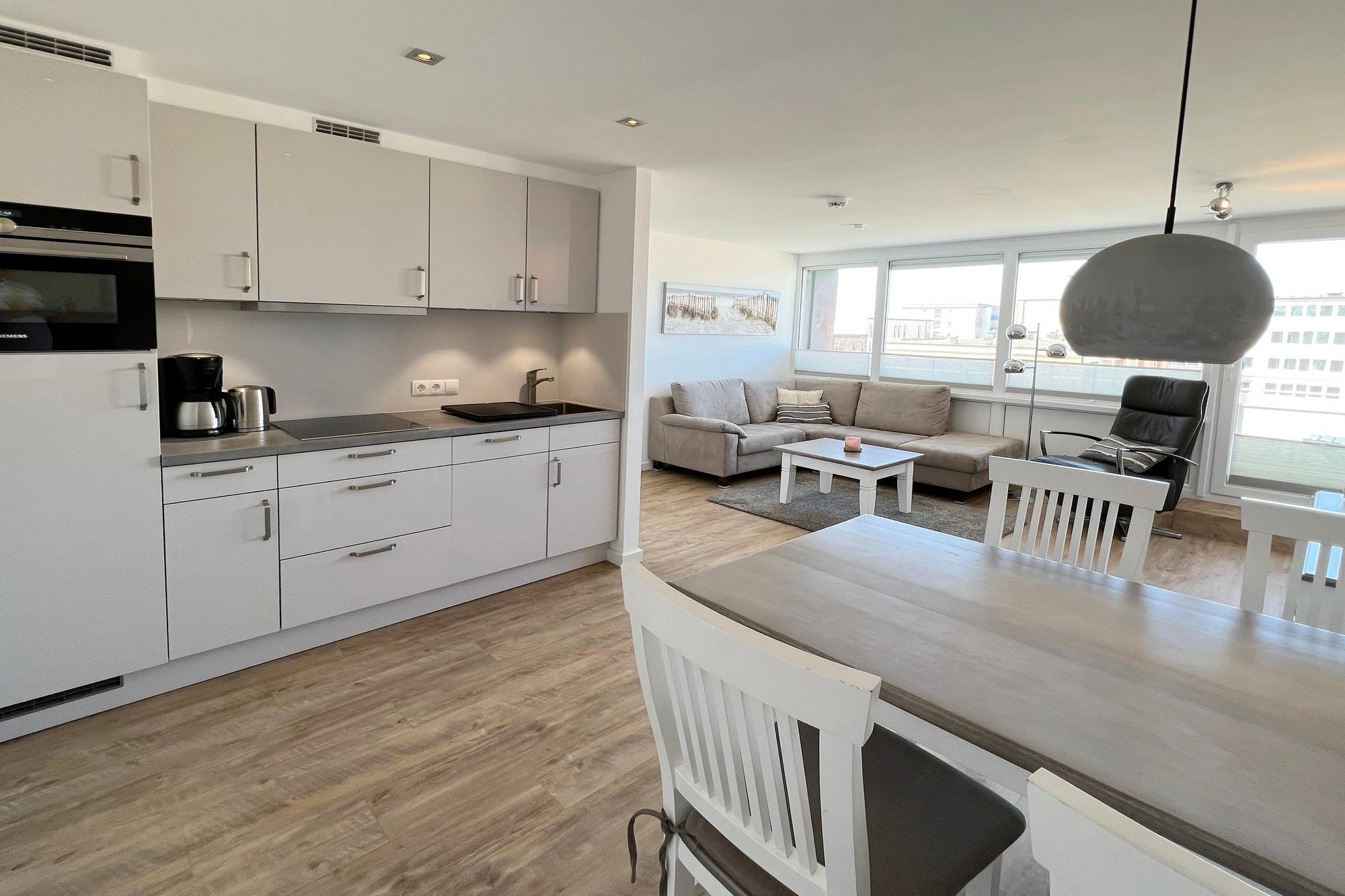 Penthouse-Ferienwohnung in Westerland mit Balkon, Meerblick und moderner Ausstattung für entspannte Urlaubstage.