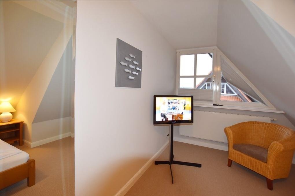 exklusive 3 Zimmerwohnung mit Balkon (OG und DG), Wohnzimmer mit gemütlicher Sitzgruppe und Eßecke, offene Küchenzeile mit Backofen, Cerankochfeld, und Geschirrspüler, Flatscreen-TV, Internetradio bluetooth fähig, 2 Schlafzimmer für je 2 Personen mit jeweils eigenem Badezimmer mit Dusche WC und Waschbecken, Leseecke mit gemütlicher Couch zum Schmökern, 1PKW-Stellplatz, Nichtraucher, keine Haustiere erlaubt.