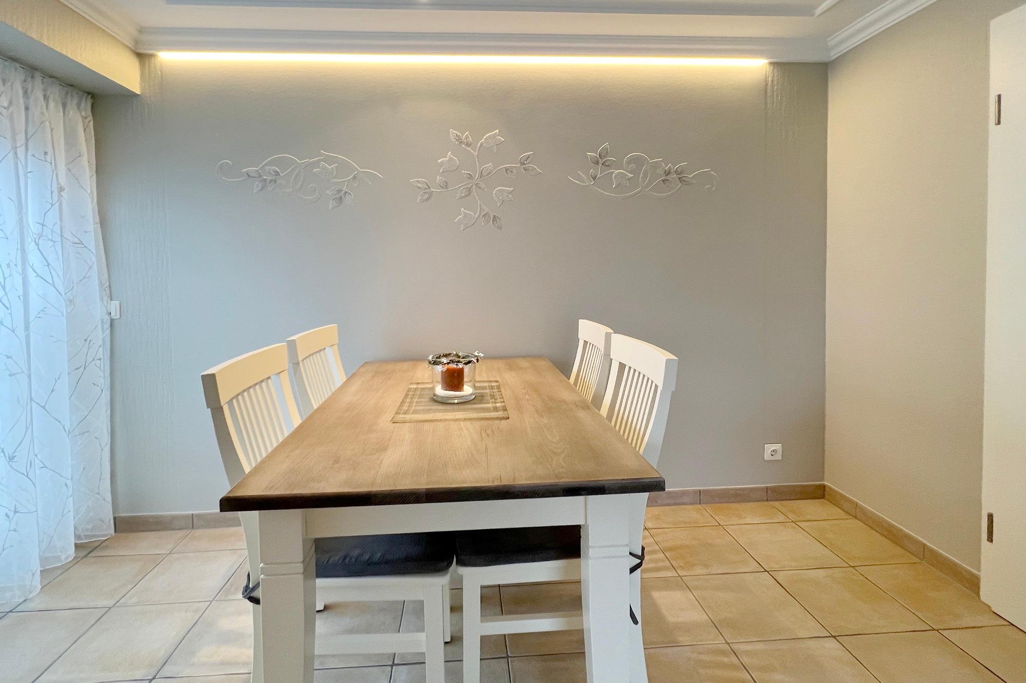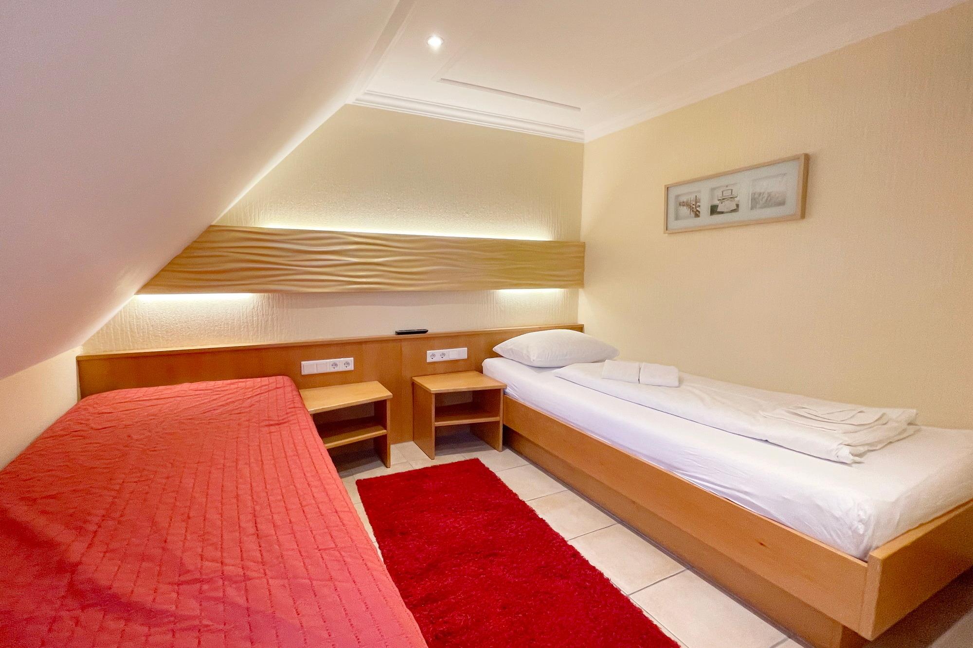 3 Zimmerwohnung mit Balkon (OG und DG), Wohnzimmer mit gemütlicher Sitzgruppe und Eßecke, offene Küche mit Cerankochfeld, und Geschirrspüler, Flatscreen-TV, 2 Schlafzimmer für je 2 Personen mit jeweils eigenem Badezimmer mit Dusche WC und Waschbecken, im UG befinden sich für die Gäste des Hauses Waschmaschine und Trockner gegen Gebühr. 1 PKW-Stellplatz. Gerne dürfen Sie hier ein gut erzogenes Haustier mitbringen. Dafür wird dann eine einmalige Haustiergebühr berechnet.