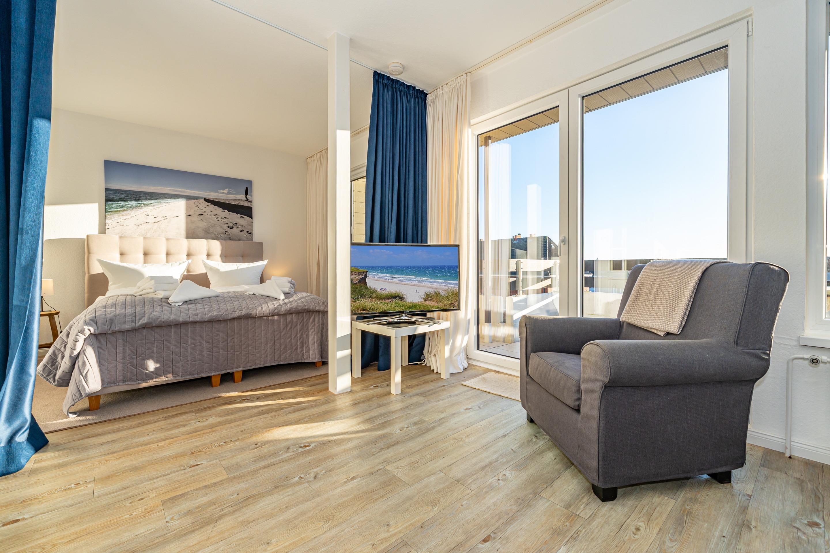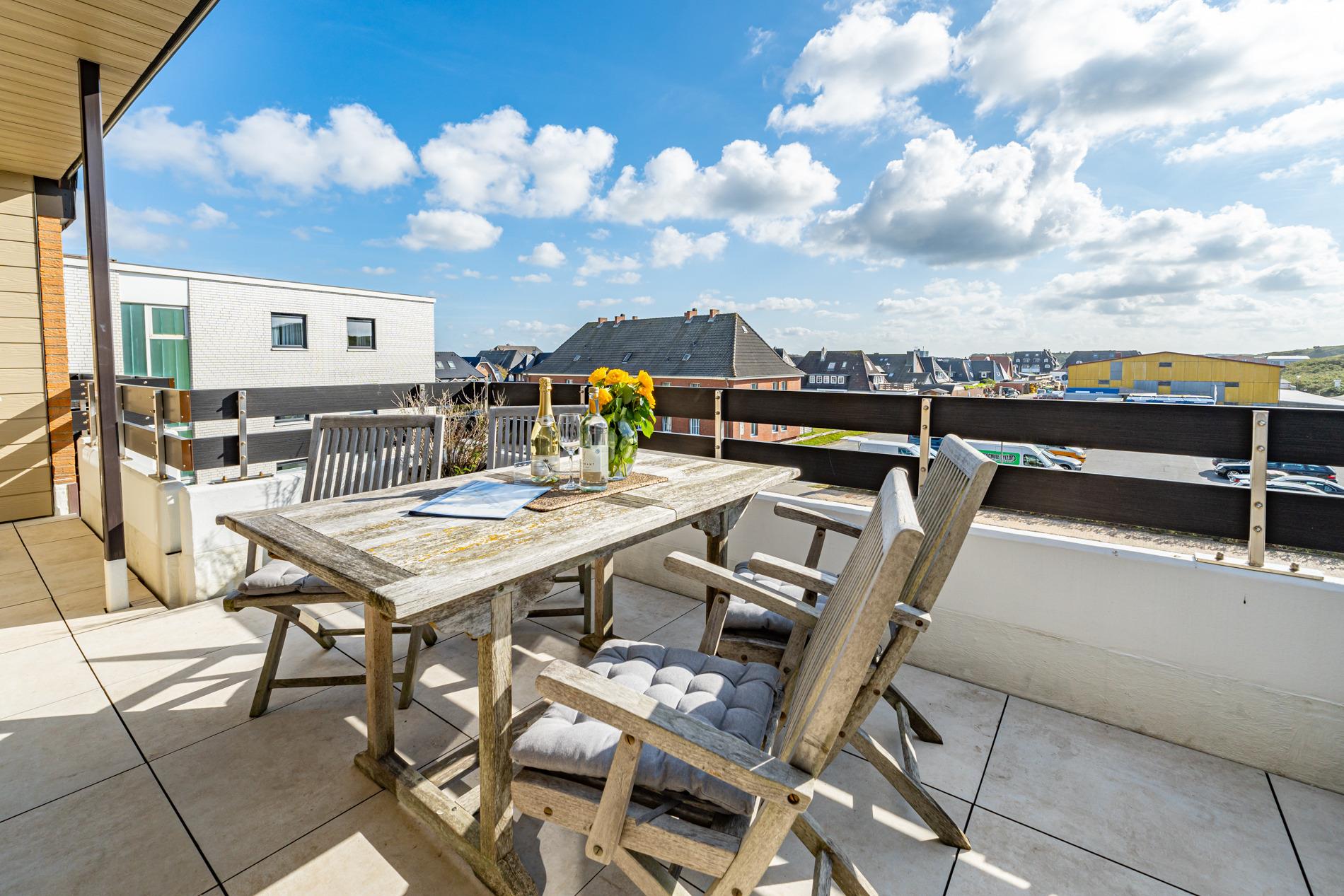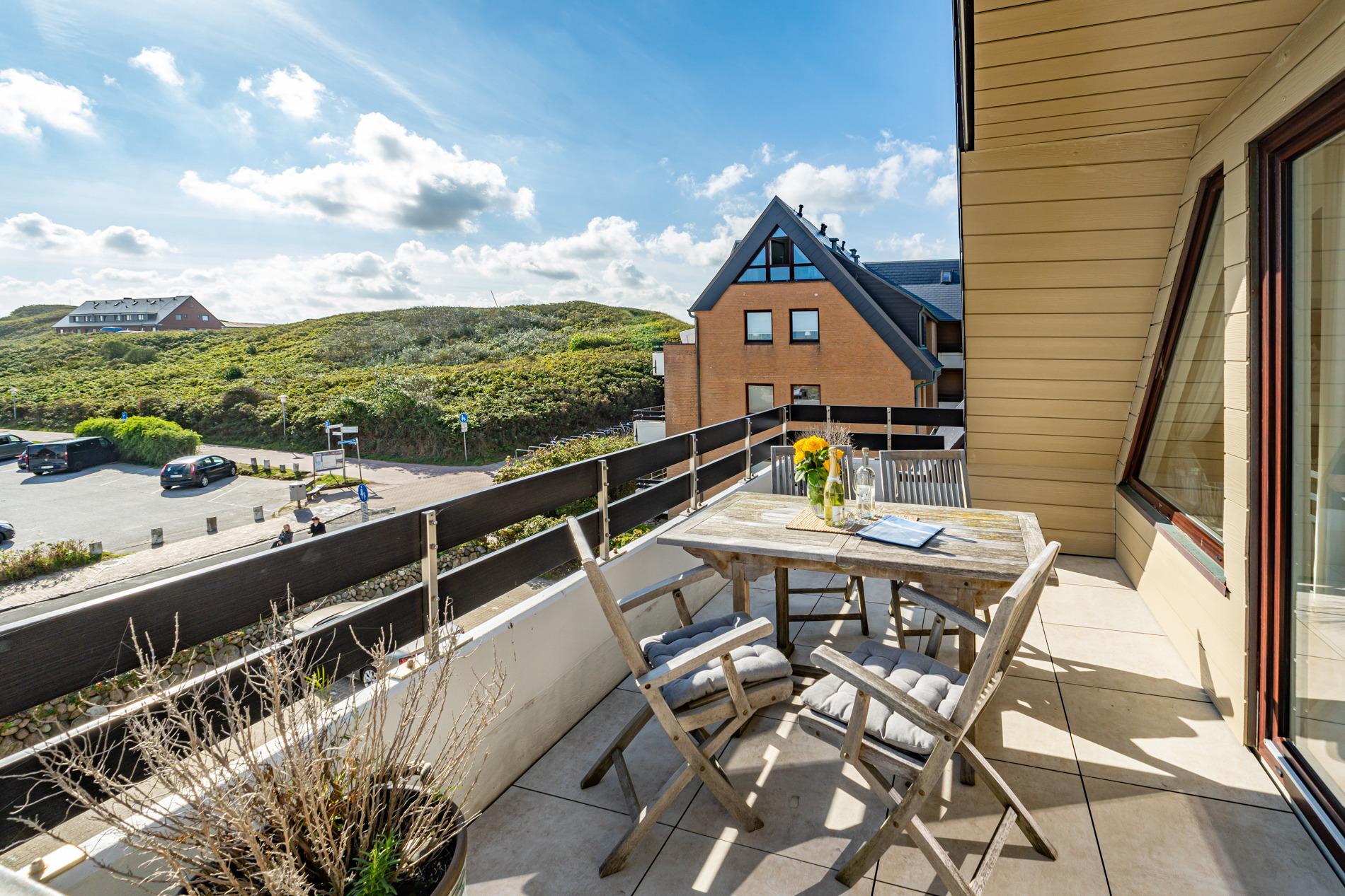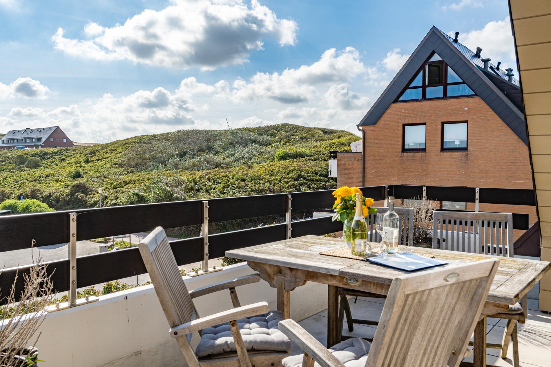 Exklusive Ferienwohnung mit großem Südbalkon und Parkplatz direkt hinter den Dünen von Westerland.