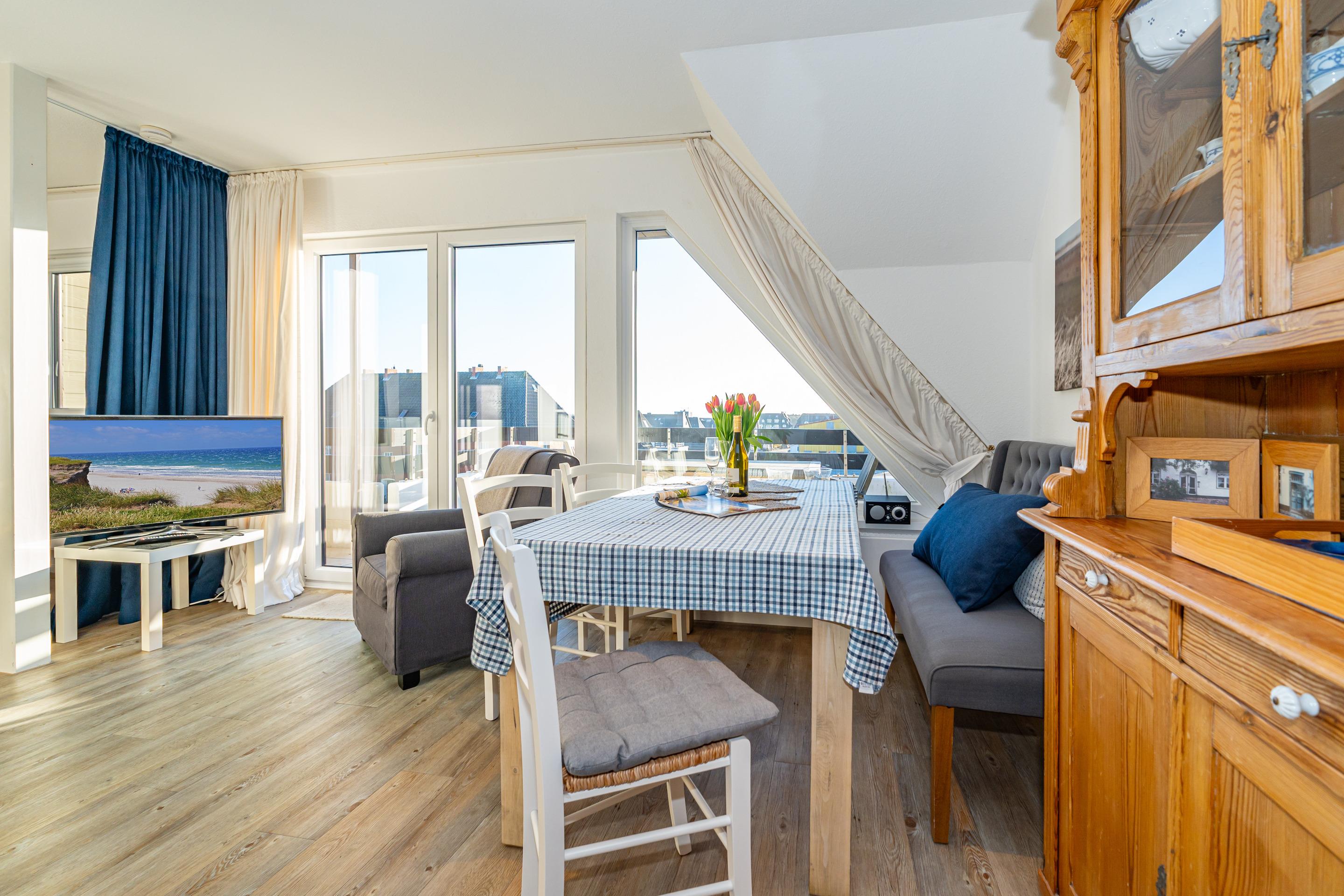 Diese ruhig und zentral gelegene 1-Zimmer-Nichtraucher-Ferienwohnung (wie 2-Zimmer-Wohnung) liegt direkt hinter den Dünen von Westerland und bietet Ihnen exklusiven Komfort. Die geschmackvoll eingerichtete Wohnung erstreckt sich über ca. 78,59 m² Gesamtfläche (inklusive Spitzboden) in der 2. Etage zur Südseite und ist ideal für bis zu 2 Personen. Zur Ausstattung gehören ein großzügiger Abstellraum, ein weitläufiger Südbalkon mit Balkonmöbeln und Auflagen sowie ein eigener PKW-Stellplatz.