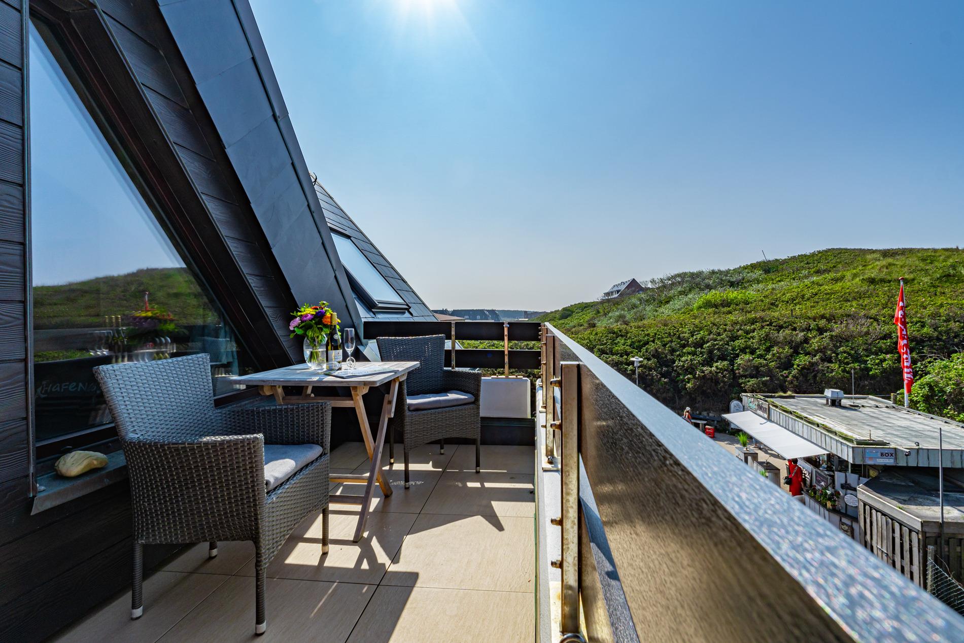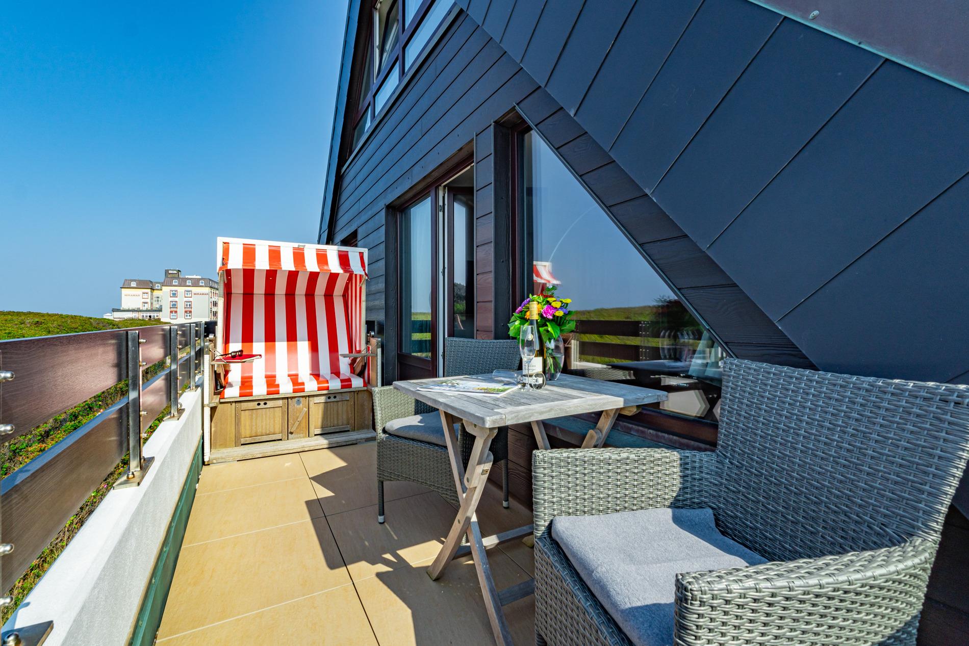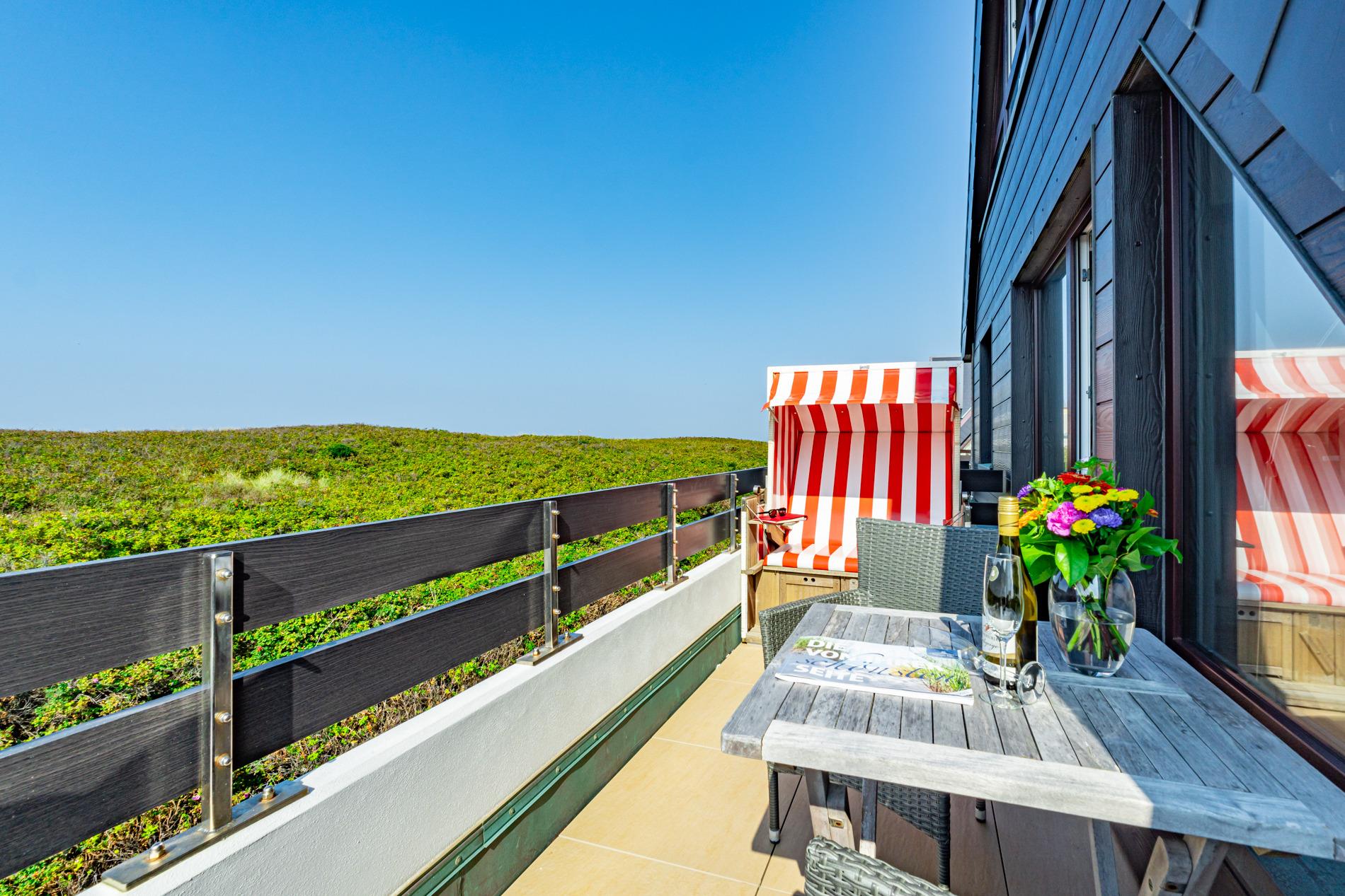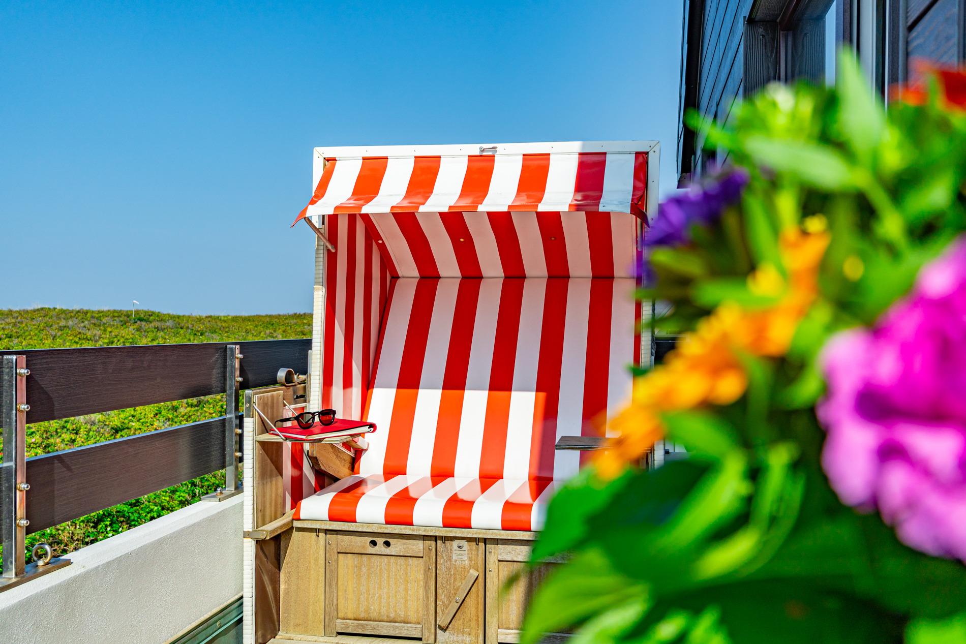 Charmante Ferienwohnung in Westerland mit Balkon und Strandkorb, perfekt für einen ruhigen Urlaub zu zweit.