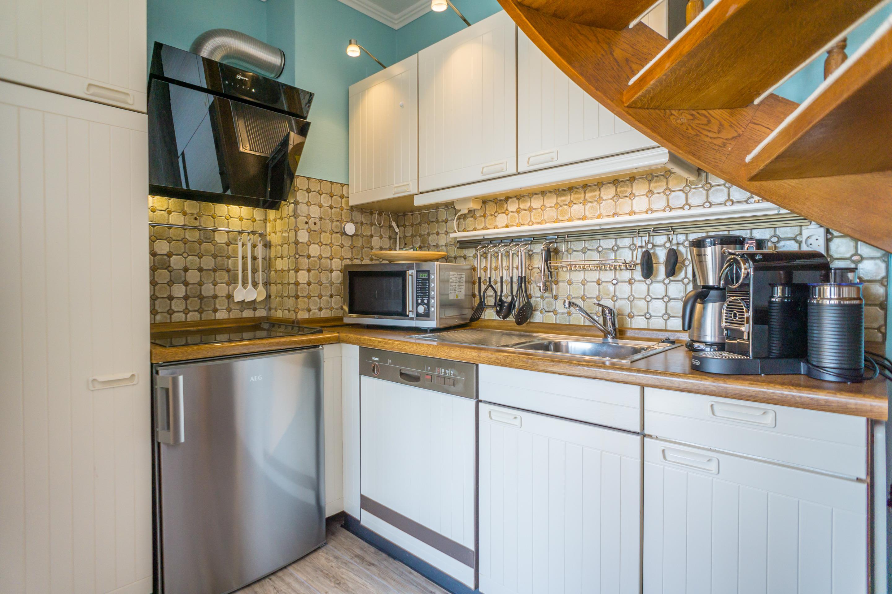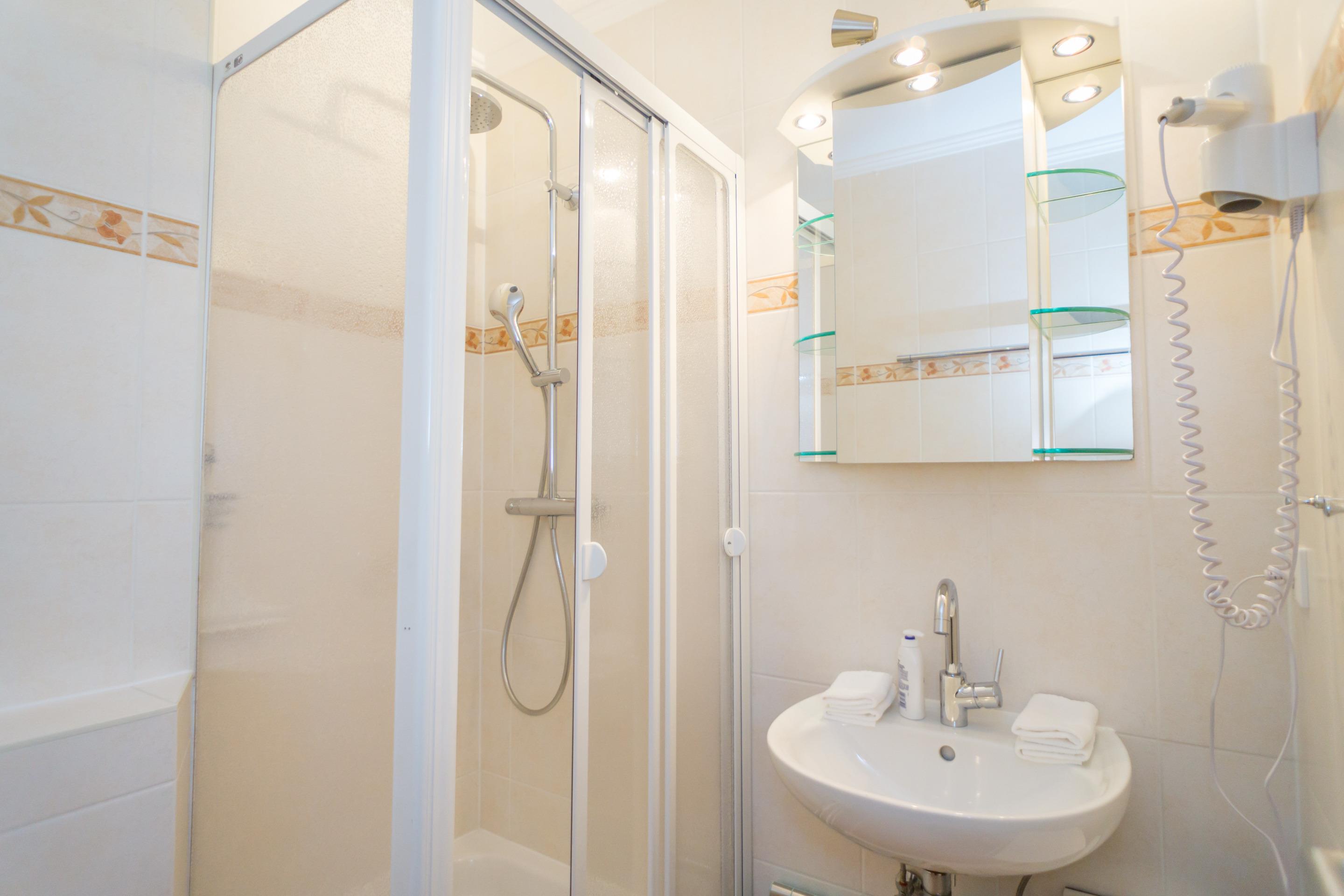 Beim Betreten der Wohnung gelangen Sie über einen einladenden Vorflur mit Garderobe in den offenen Wohnbereich, das Schlafzimmer sowie in das helle Duschbad/WC. Der Wohnbereich besticht durch ein komfortables 3-Sitzer-Sofa, einen separaten Essplatz sowie einen Kabel-Flachbild-TV, ergänzt durch Radio, Telefon und WLAN. Von hier aus haben Sie direkten Zugang zum Balkon. Die moderne, offene Kochnische ist mit einem Geschirrspüler, einer Mikrowelle, einem Ceranfeld mit vier Kochfeldern und einem Kühlschrank ausgestattet; zur Grundausstattung zählen zudem Kaffeemaschine, Wasserkocher und Toaster.