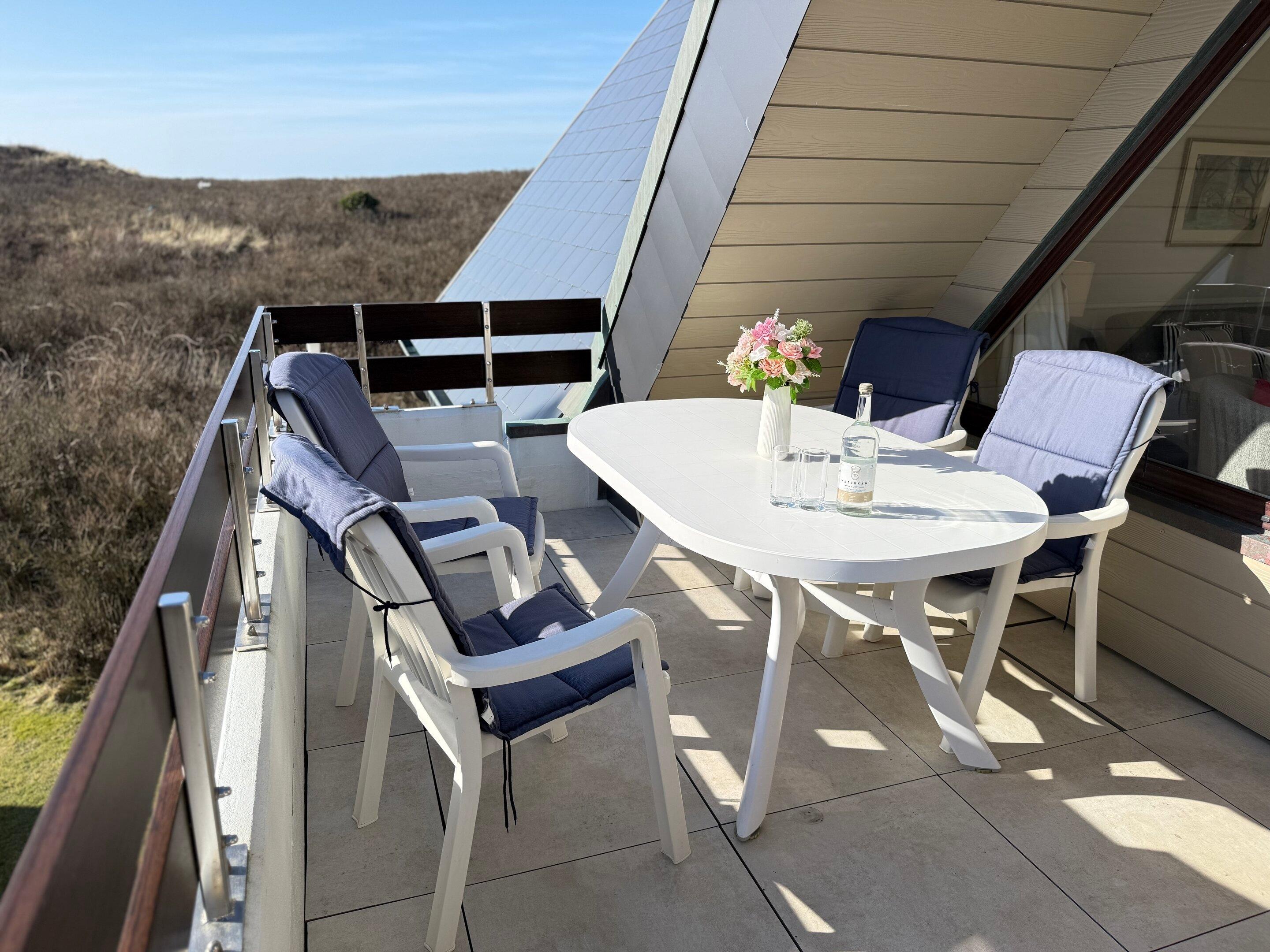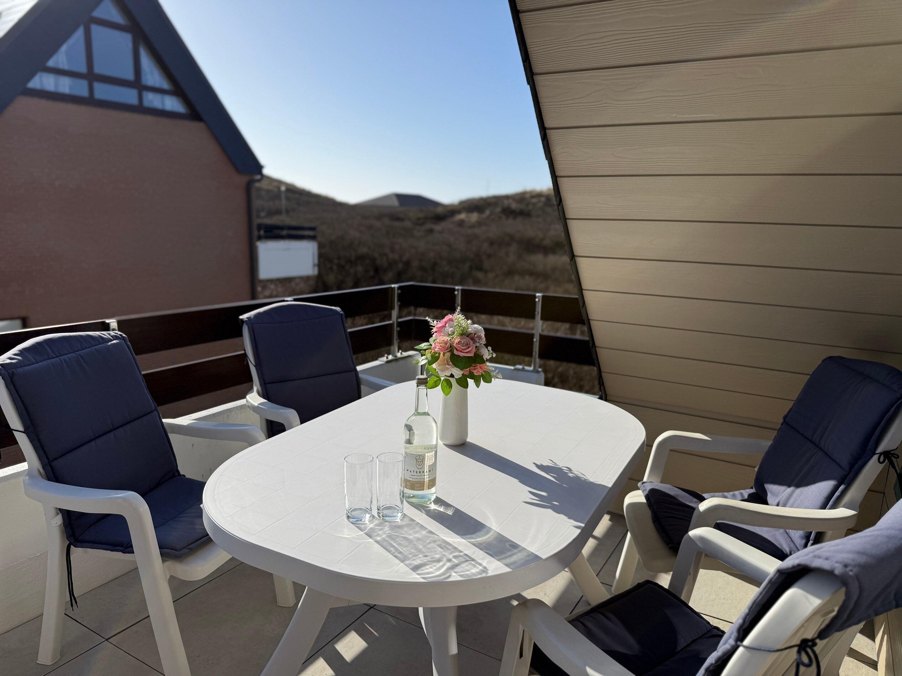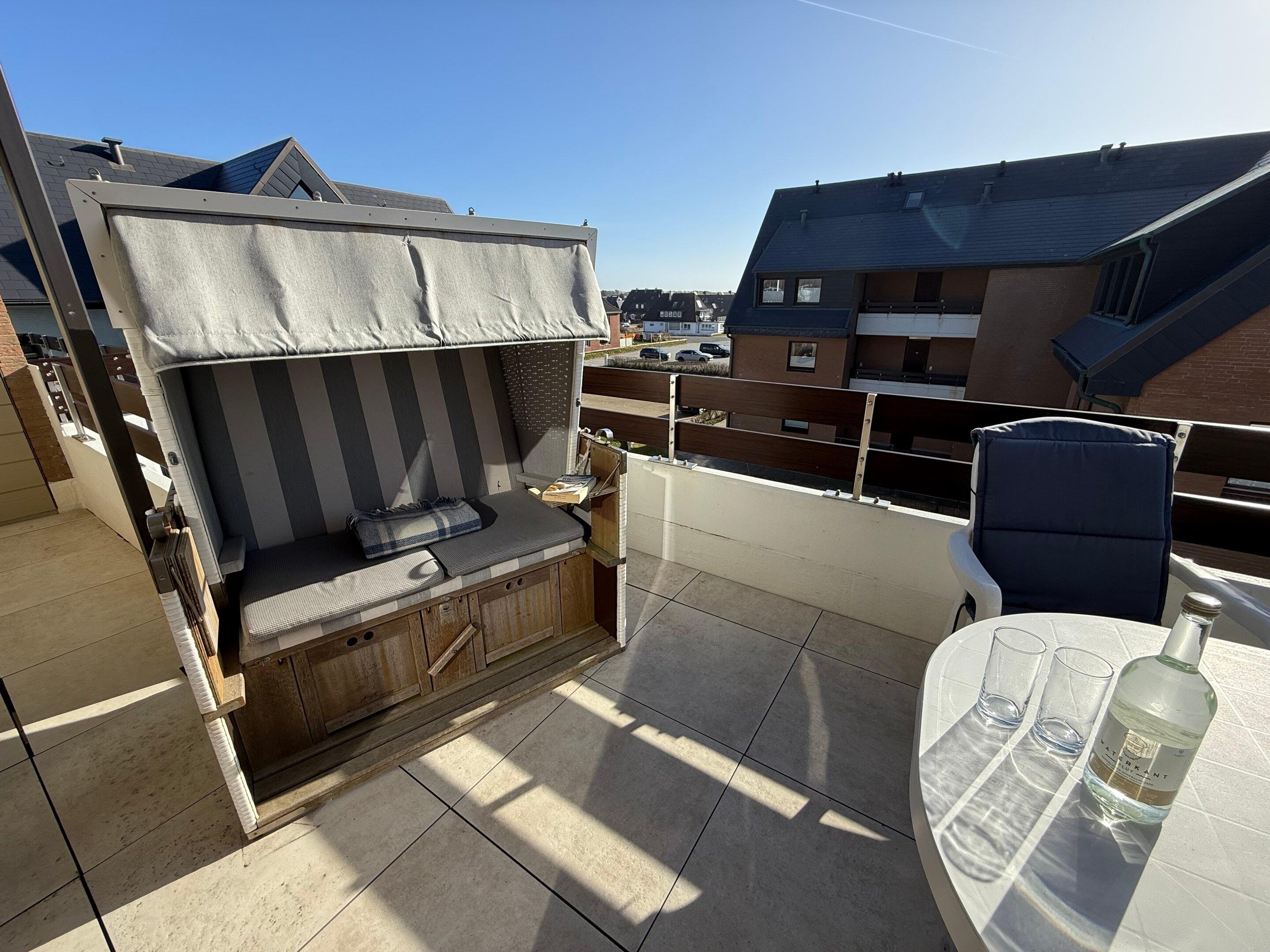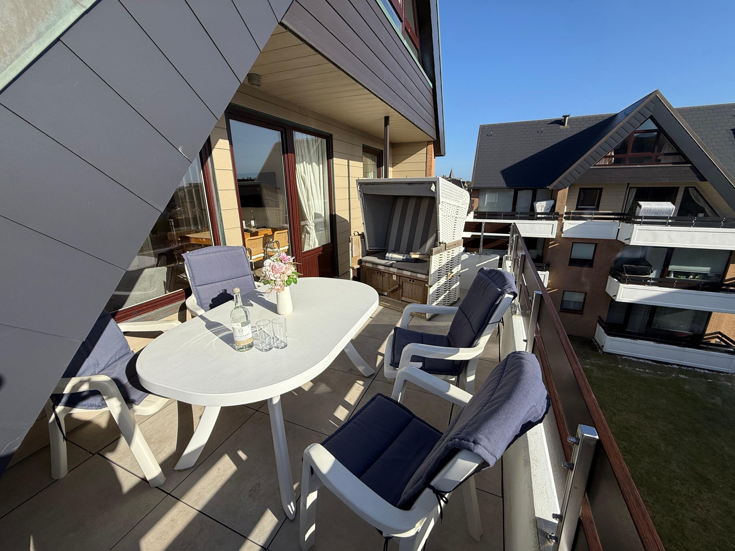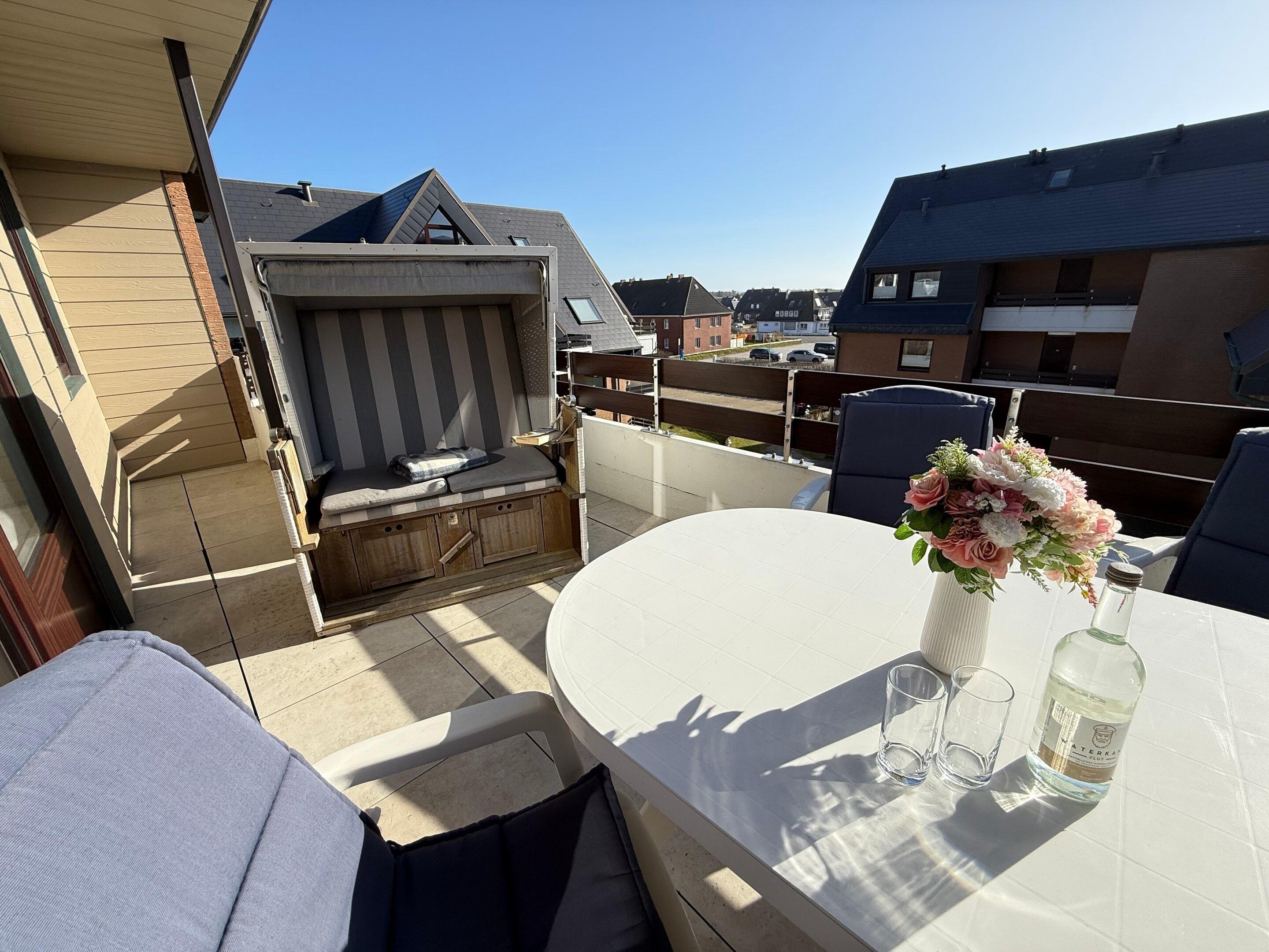 Exklusive 2-Zimmer-Ferienwohnung mit zwei Bädern und großem Balkon in ruhiger Lage hinter den Dünen von Westerland.