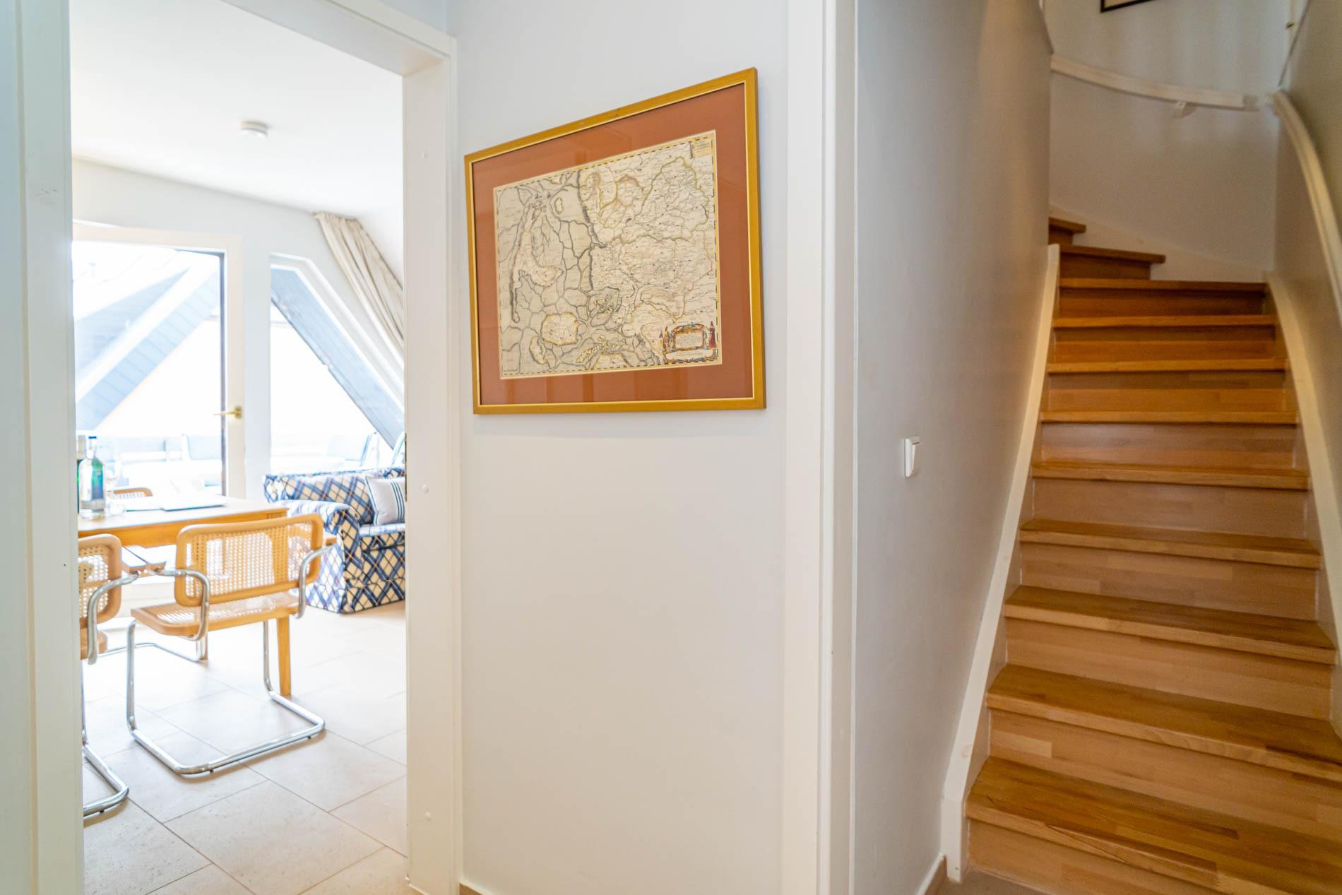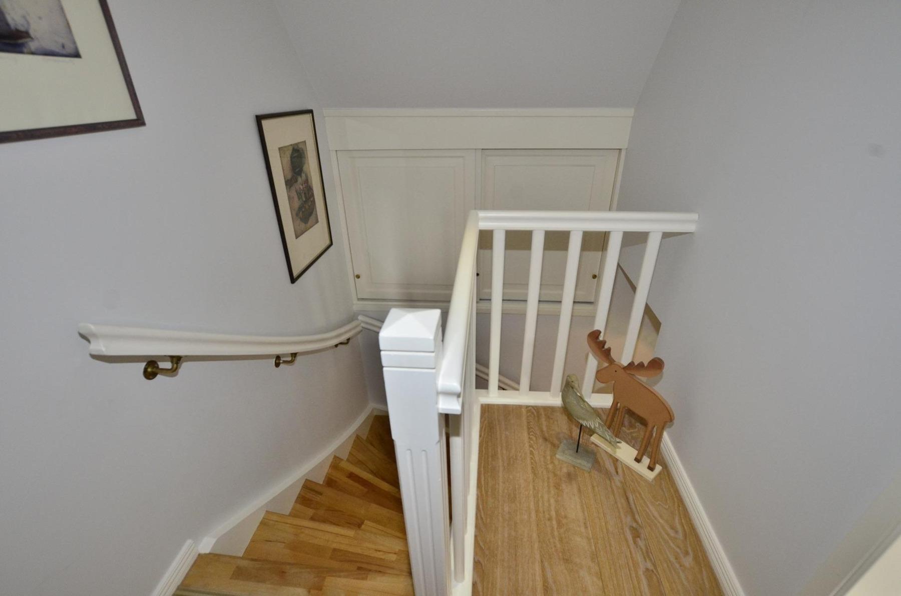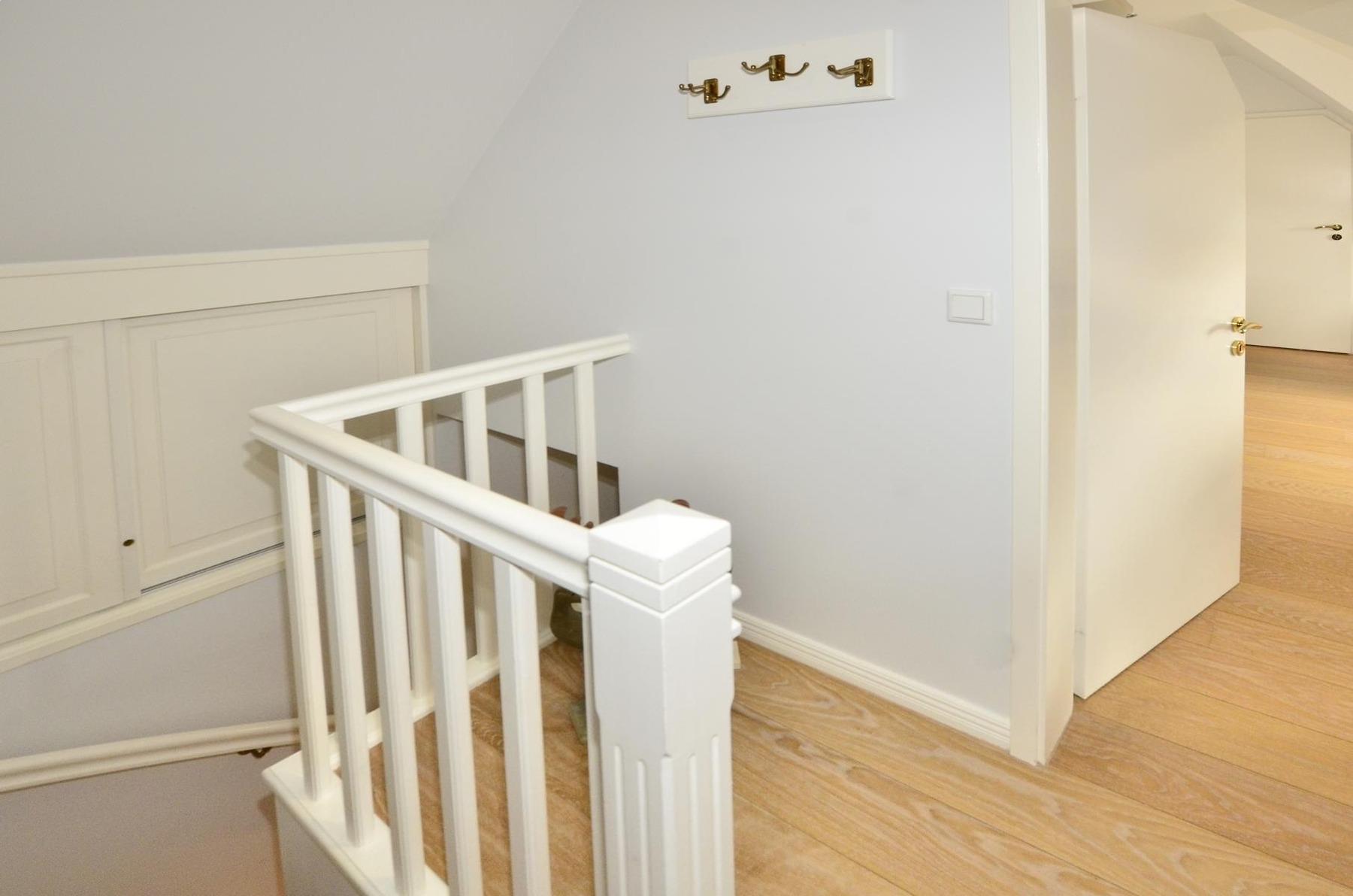 Dachgeschoss:Im Dachgeschoss befindet sich ein praktischer Abstellraum, der Platz für Koffer, Wäscheständer und weiteres Gepäck bietet. Zusätzlich steht hier ein zweites Badezimmer mit Dusche, Waschtisch, Handtuchtrockner und WC zur Verfügung.