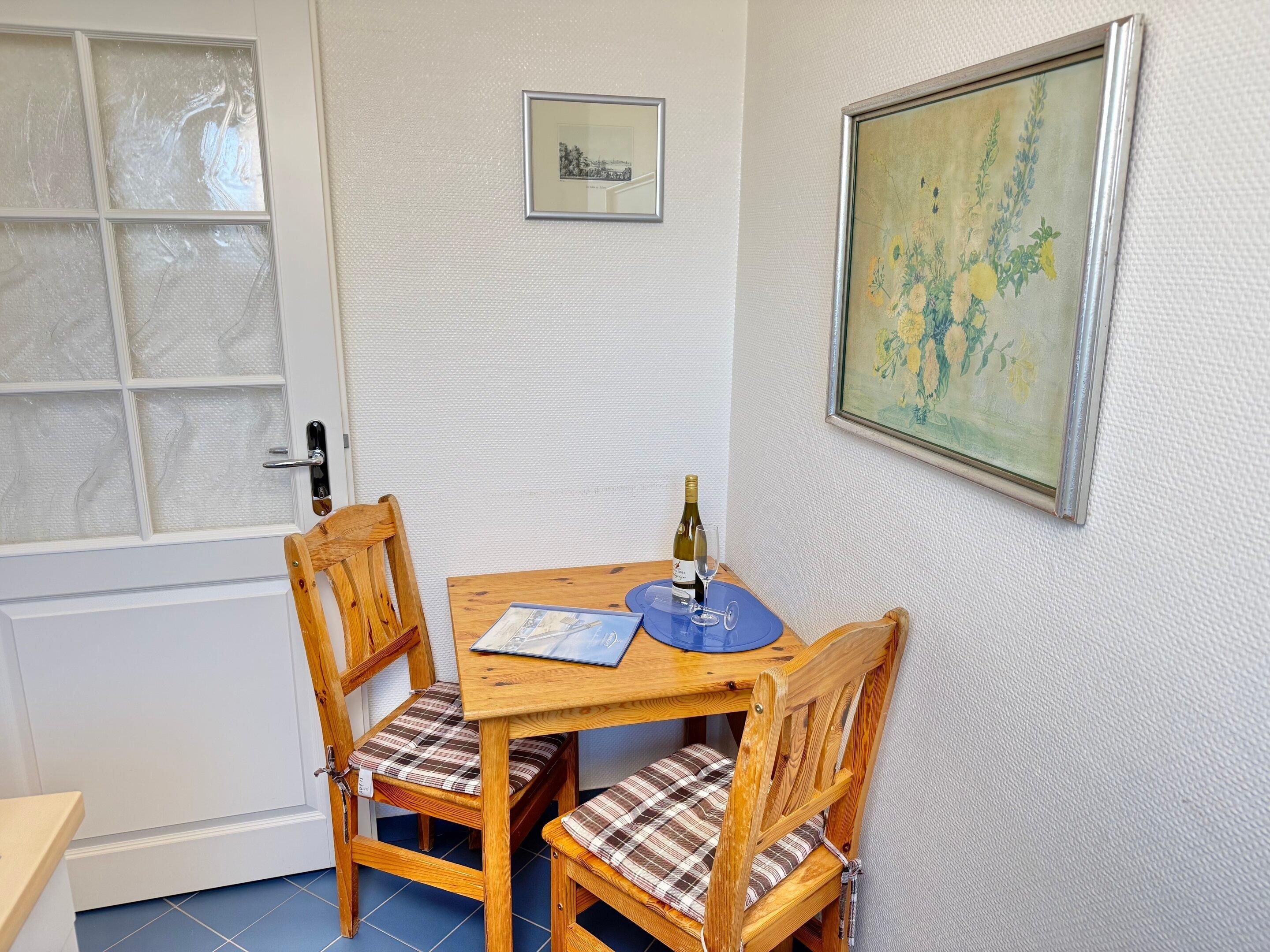 1-Zimmer-Nichtraucher-Ferienwohnung ca. 30 qm, in der 3. Etage mit Ostloggia (Morgensonne, mit Balkonmöbeln und Auflagen) für max. 2 Personen.