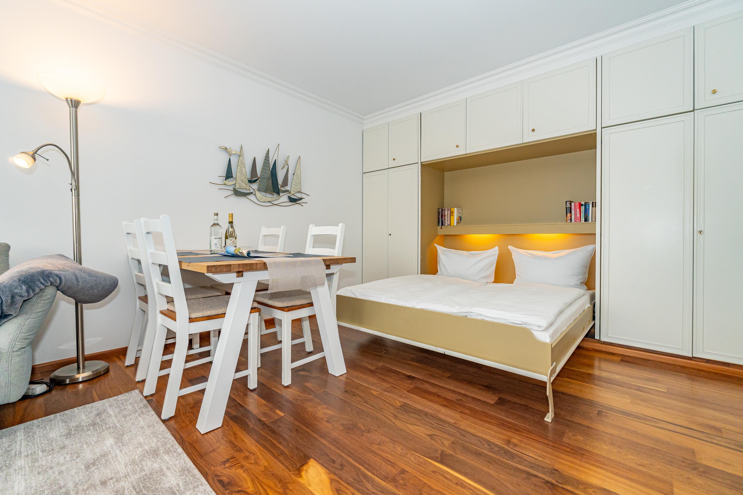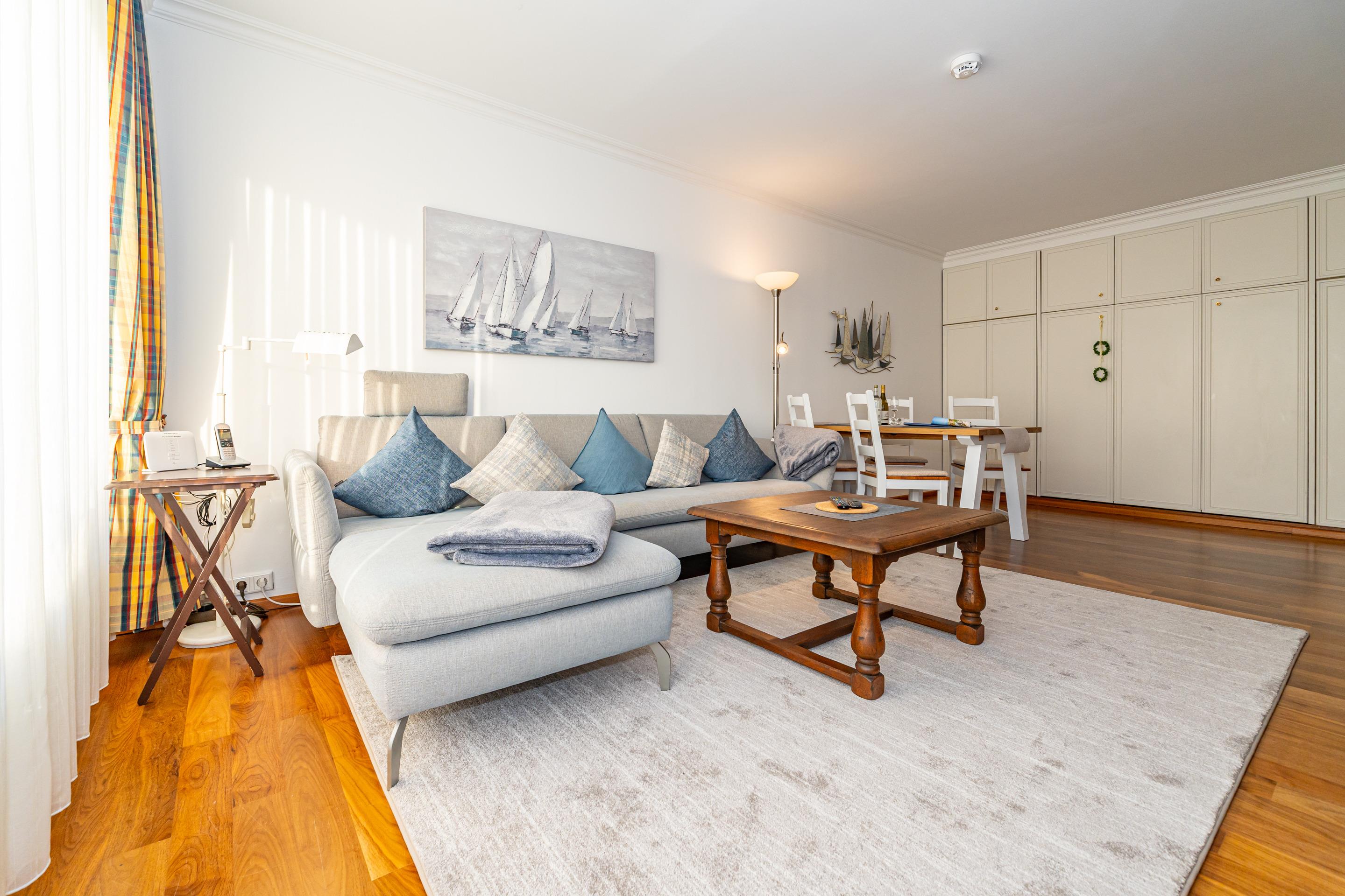 Der Wohnraum besteht aus einer gemütlichen Sitzgarnitur (Sofaecke), einer Essecke, Doppelwandschrankbett (2 Einzelmatratzen), Kabel-Flachbild-TV, HiFi-Anlage, Telefon inklusive Flatrate für Gespräche ins deutsche Festnetz (Handynummern gesperrt) und[nbsp][nbsp]kostenloser Internetzugang per W-Lan (ohne Gewähr).