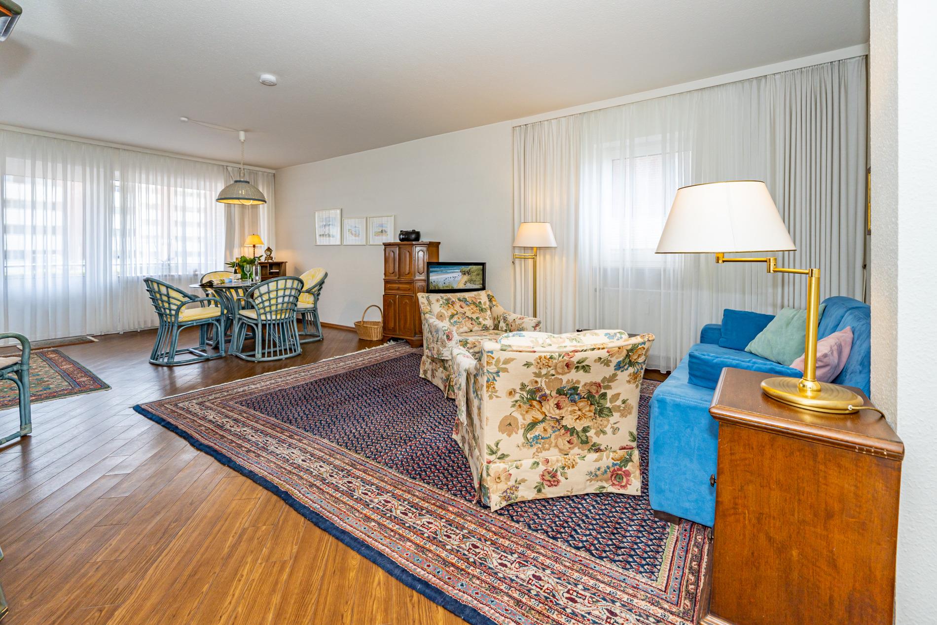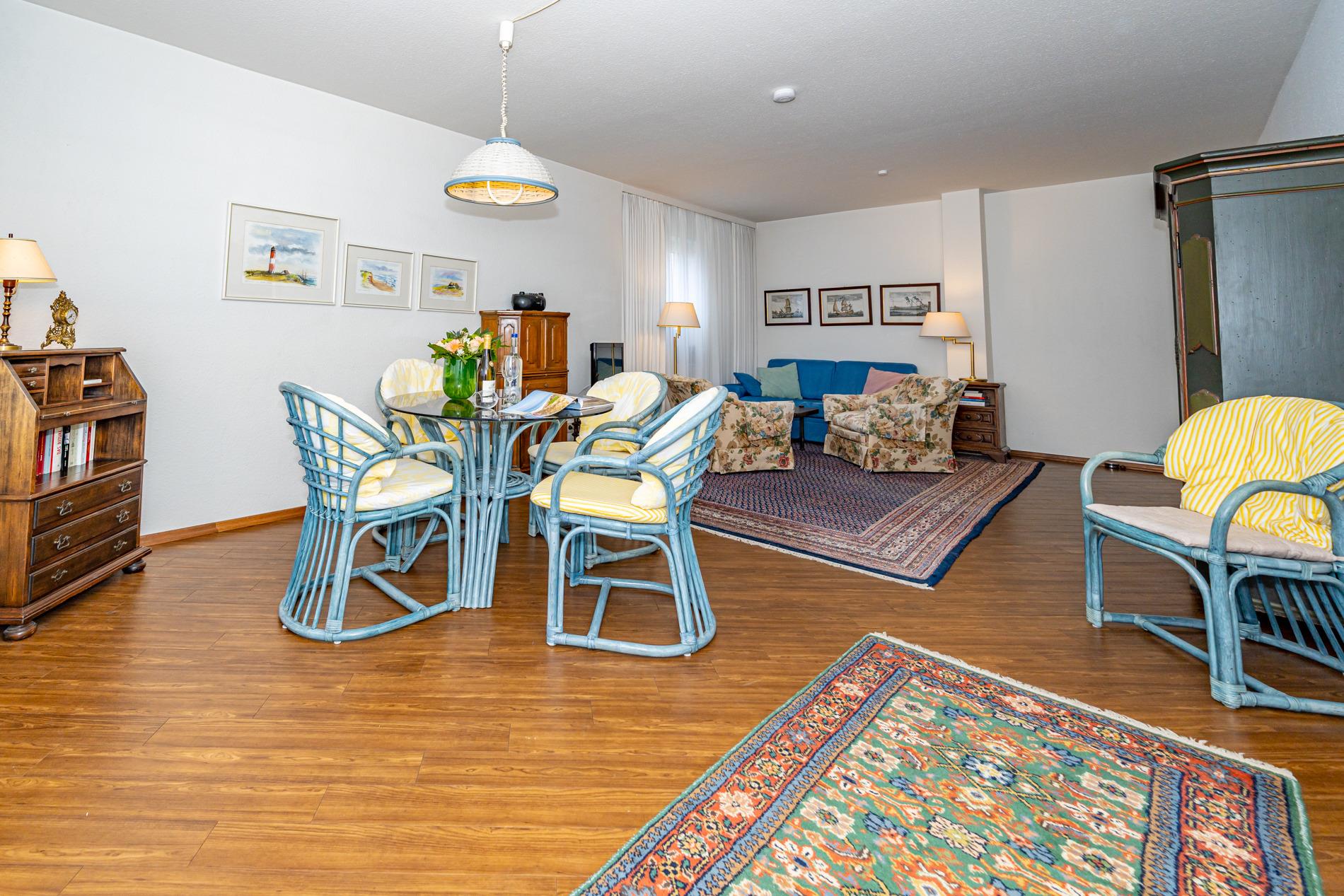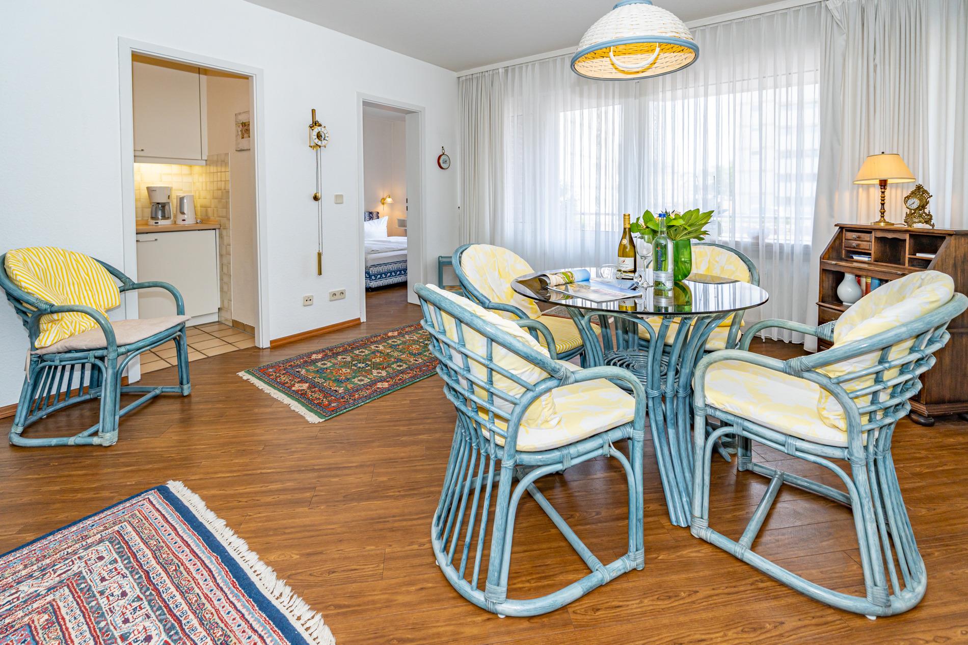 2-Zimmer-Ferienwohnung (ca. 45 qm, ab 2014 Nichtraucher) im Parterre zur Ostseite für max. 4 Personen mit Ostloggia (Vormittagssonne, mit Balkonmöbeln und Auflagen).