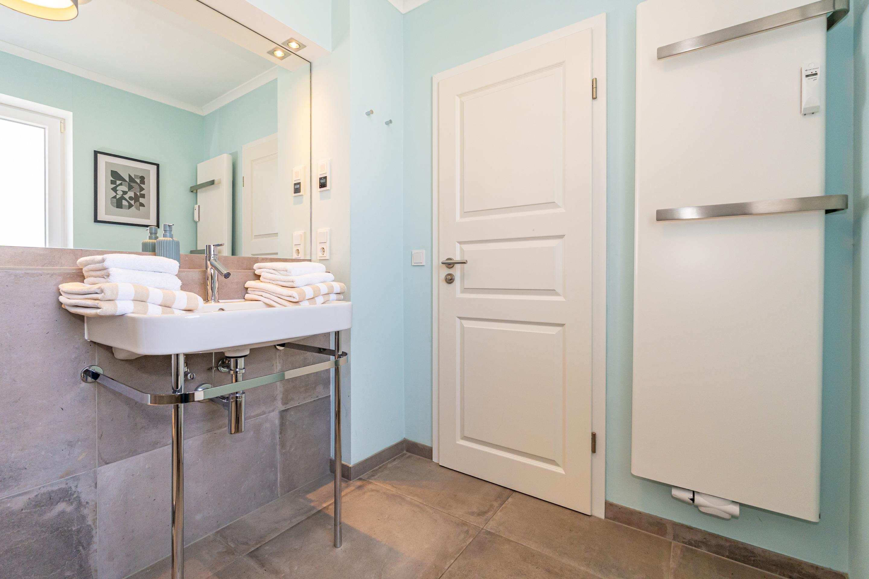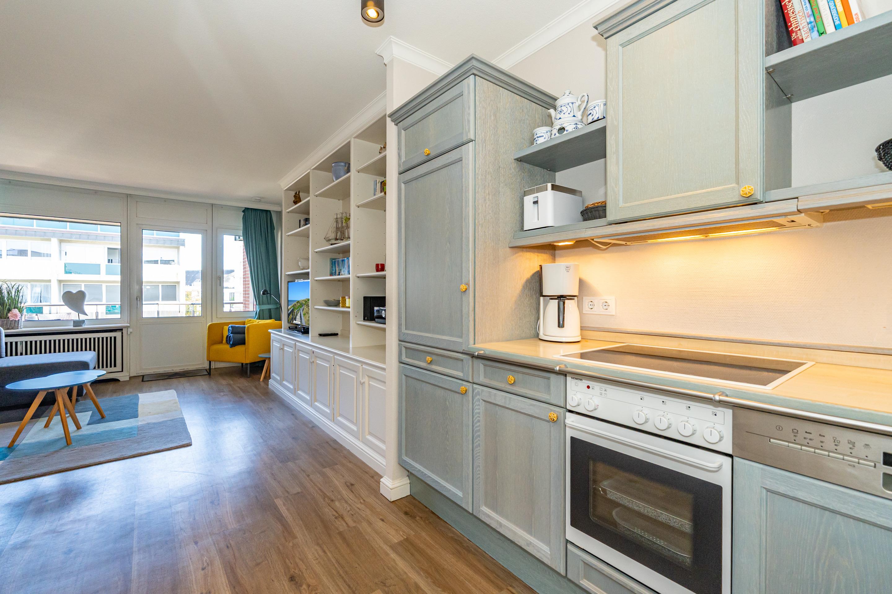 Mit pastelligen Farben und einem modernen Möbelmix bietet diese hochwertig ausgestattete Ferienwohnung "Sylter Glück" in Westerland auf einer Fläche von 75 m² Platz für maximal 4 Personen. Sie befindet sich in der 2. Etage und verfügt neben dem Wohnzimmer über ein Schlafzimmer sowie ein Badezimmer. Zur Ausstattung gehören ein Ostbalkon mit Balkonmöbeln, Auflagen, sowie ein offener WLAN Hotspot im Haus. Der Wohnbereich vereint eine gemütliche Schlafcouch (Liegefläche 1,40 x 2m), einen Flachbild-TV sowie eine voll ausgestattete offene Einbauküche mit Backofen, Geschirrspüler, Cerankochfeld sowie Nespressomaschine (Kapseln). Kühlschrank, Kaffeemaschine, Toaster und Wasserkocher gehören zur Grundausstattung. Vom Wohnzimmer aus hat man Zutritt auf den geschützten Balkon, der bei schönem Wetter zum sonnenbaden und verweilen einlädt. Für einen guten Start in den Tag sorgt das trendige großzügige Badezimmer, das nicht nur ein optischer Hingucker ist, sondern mit Regendusche, Fön und Handtuchtrockner entsprechende Annehmlichkeiten mit sich bringt.
