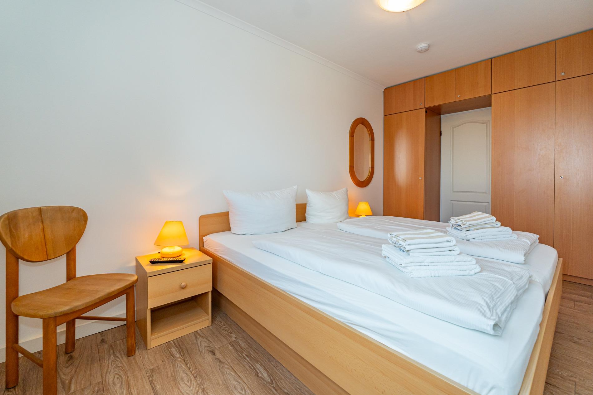 Komfortable 2-Zimmer-Nichtraucher-Ferienwohnung, ca. 52 qm in der 3. Etage mit großzügiger Südloggia (mit Balkonmöbeln und Auflagen) für max. 4 Personen.
