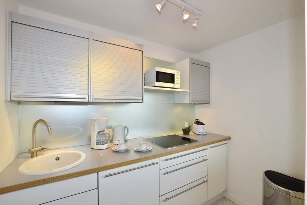 Die vollausgestattete, helle Küche hat einen Geschirrspüler, eine Nespresso-Maschine, ein 4-Platten-Ceranfeld und einen Kühlschrank mit 3-Sterne-Gefrierfach.
