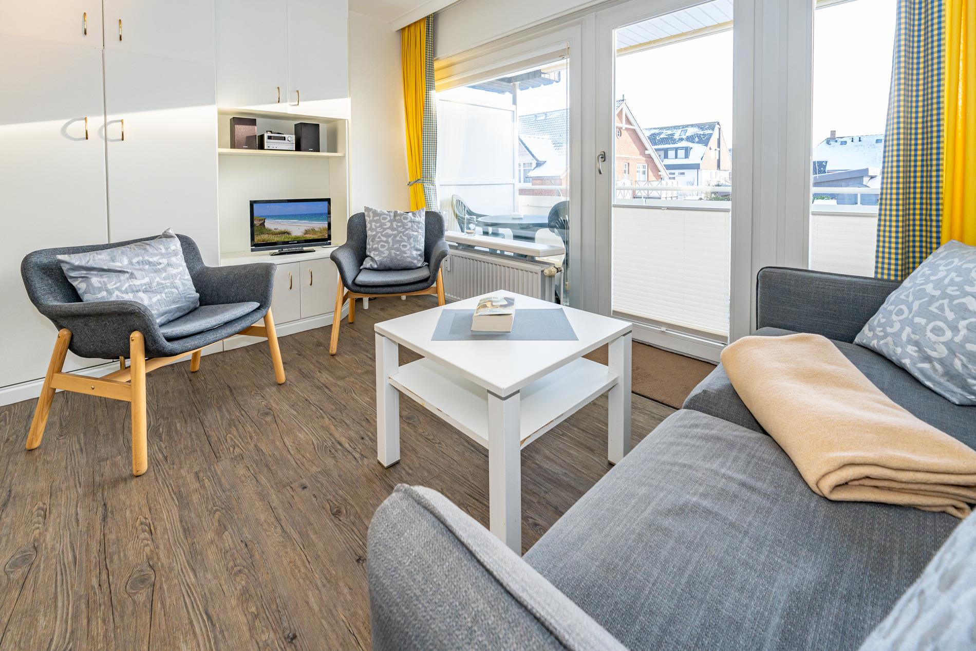 Moderne 2-Zimmer-Ferienwohnung in ruhiger, zentraler Lage mit Südbalkon und kostenlosem Tiefgaragen-Stellplatz in Westerland.
