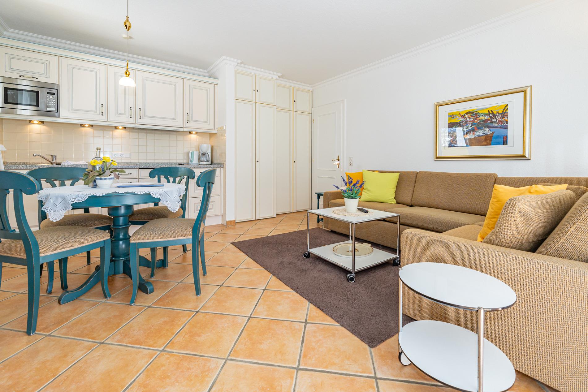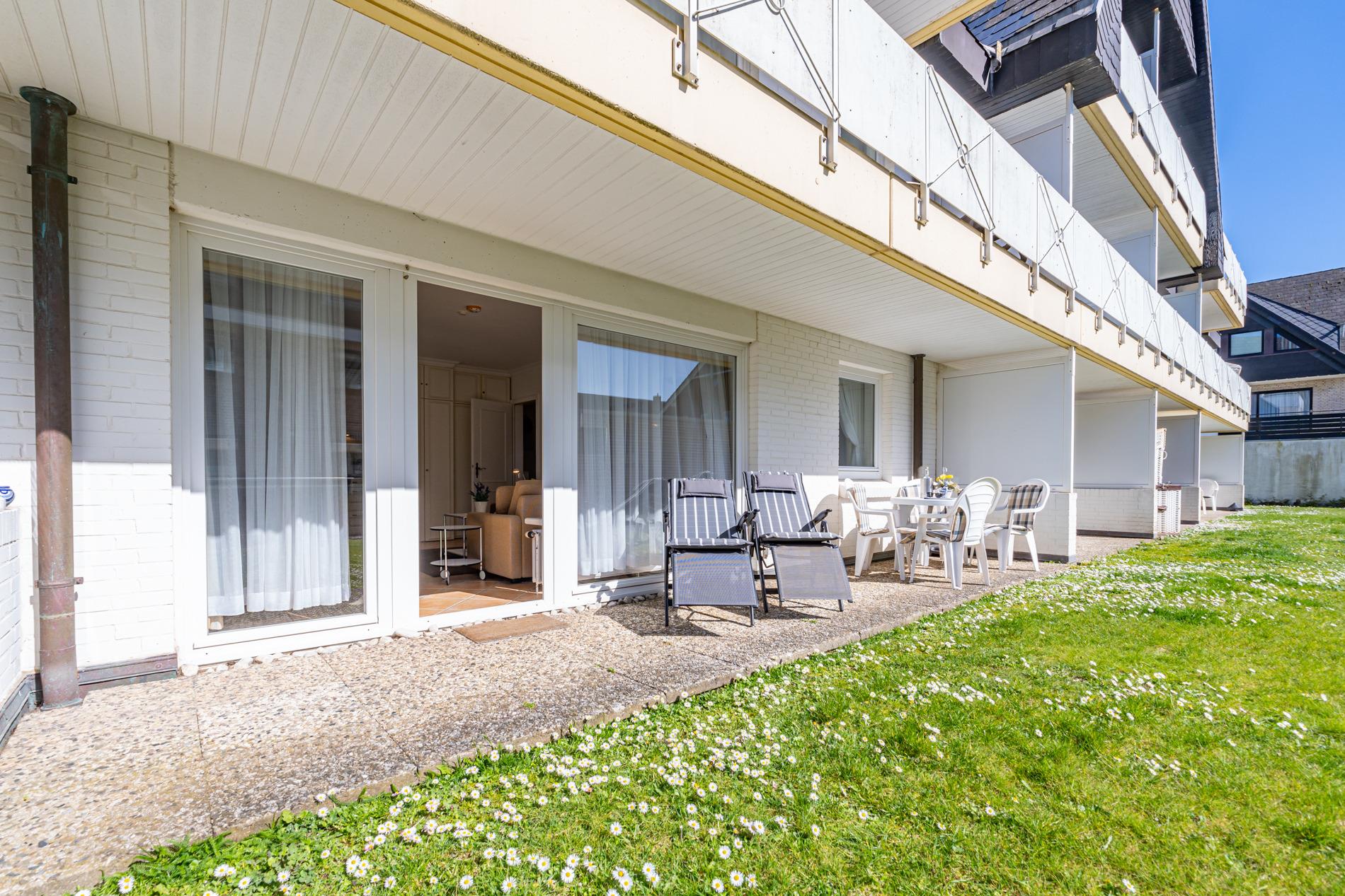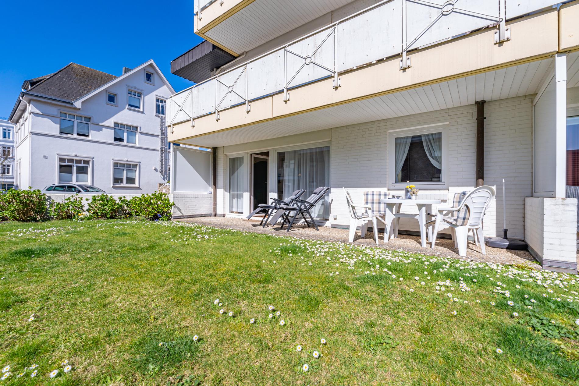 Gemütliche 2-Zimmer-Ferienwohnung mit Südterrasse und Tiefgaragenstellplatz in zentraler, ruhiger Lage in Westerland.