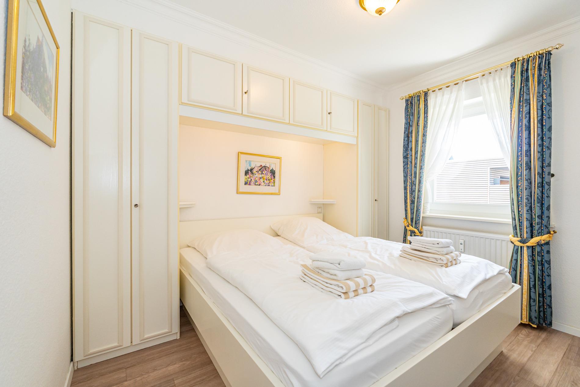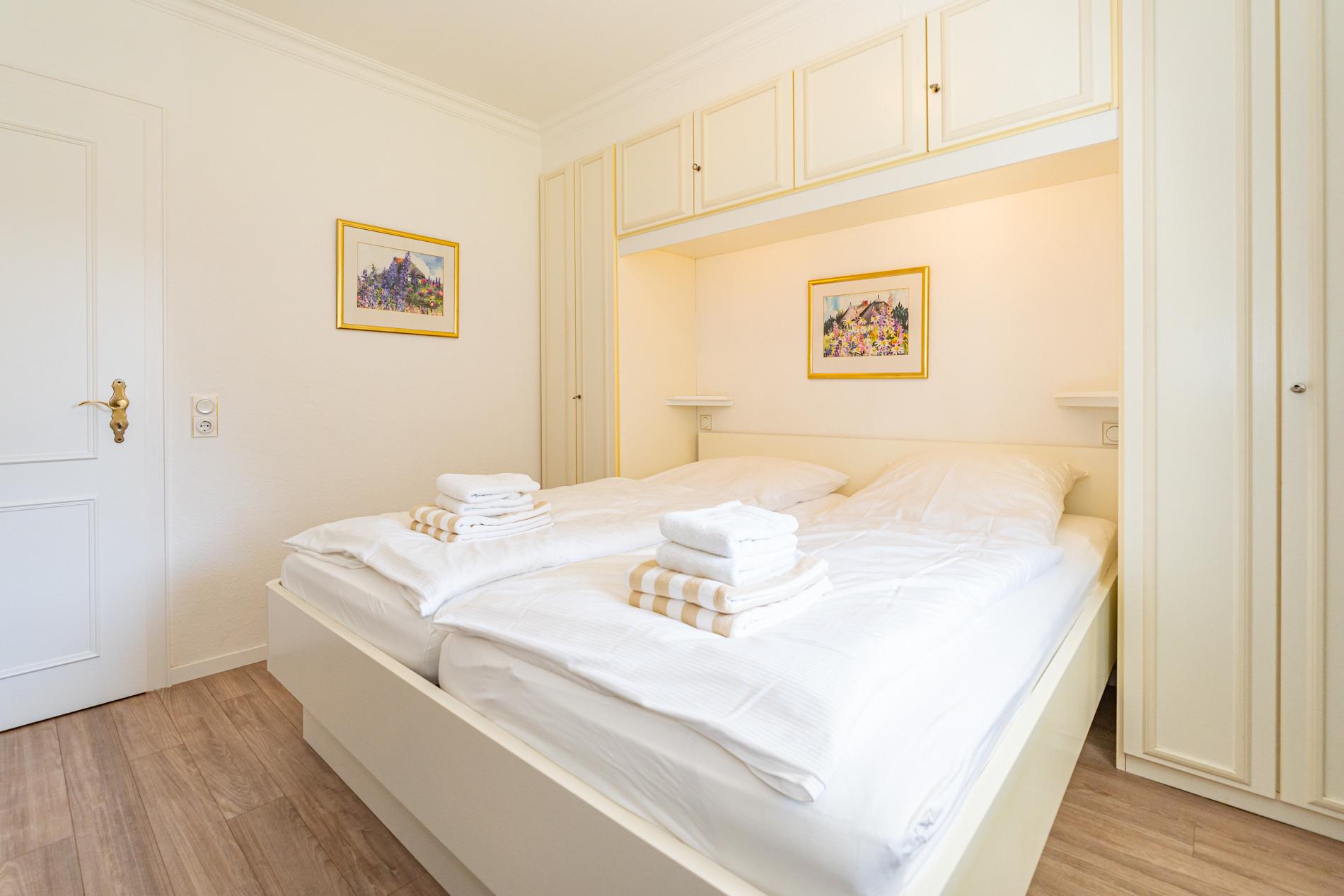 Das Schlafzimmer ist mit einem guten Doppelbett eingerichtet.