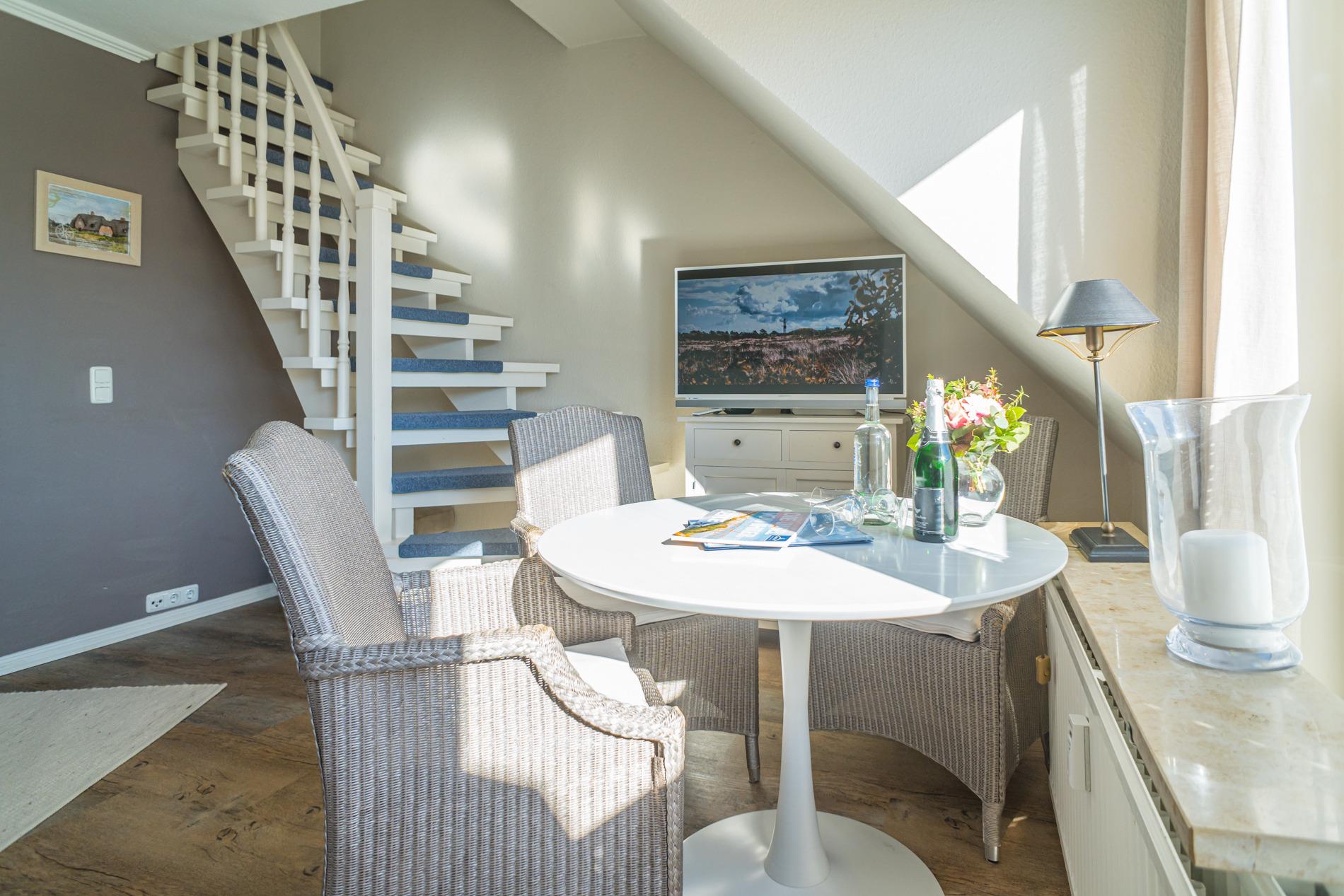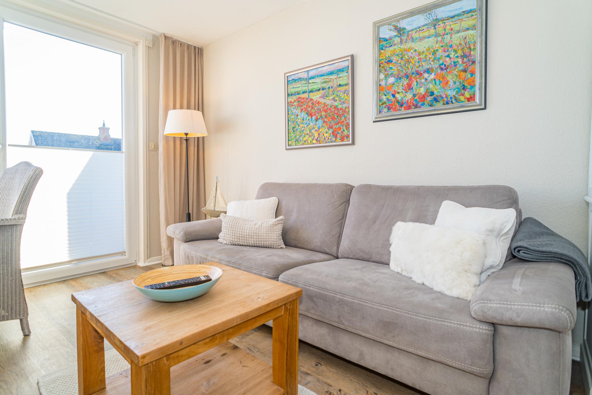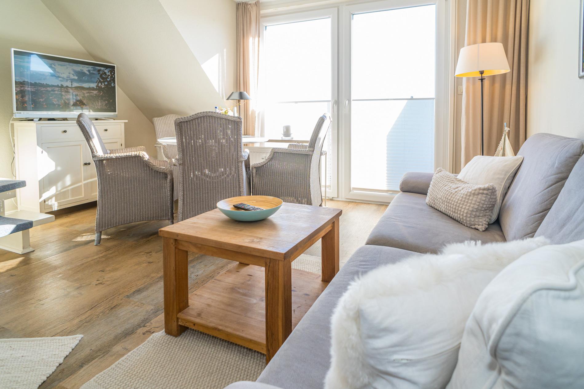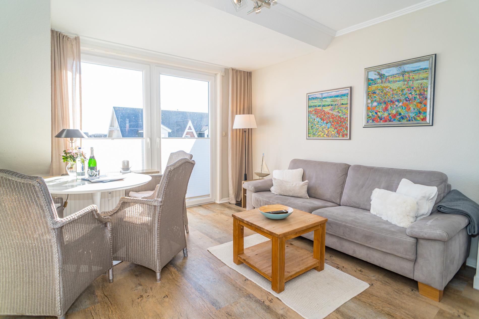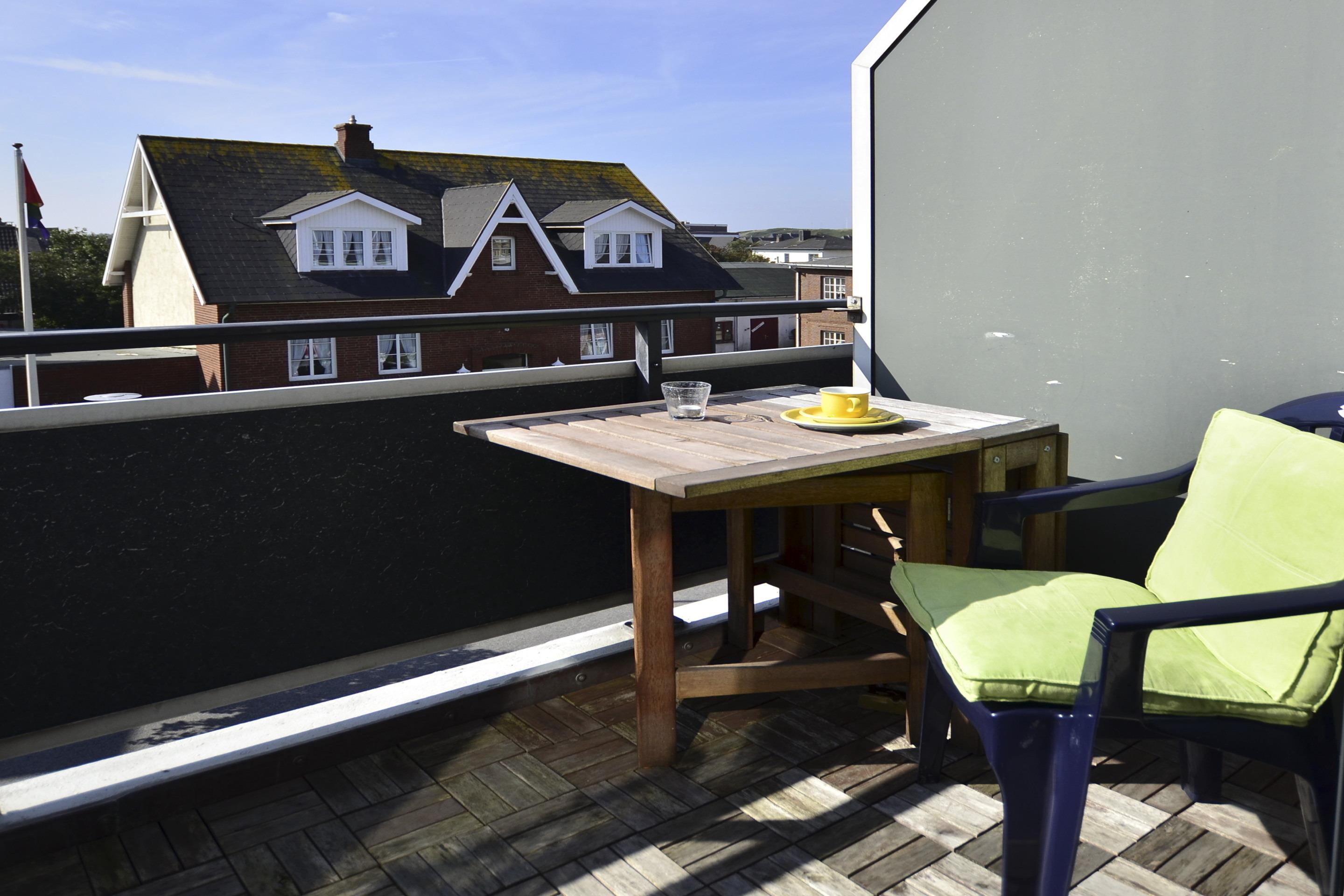 Stilvolle Ferienwohnung "Sonnenperle" in Westerland mit Süd-Balkon und eigenem Stellplatz für erholsamen Urlaub.