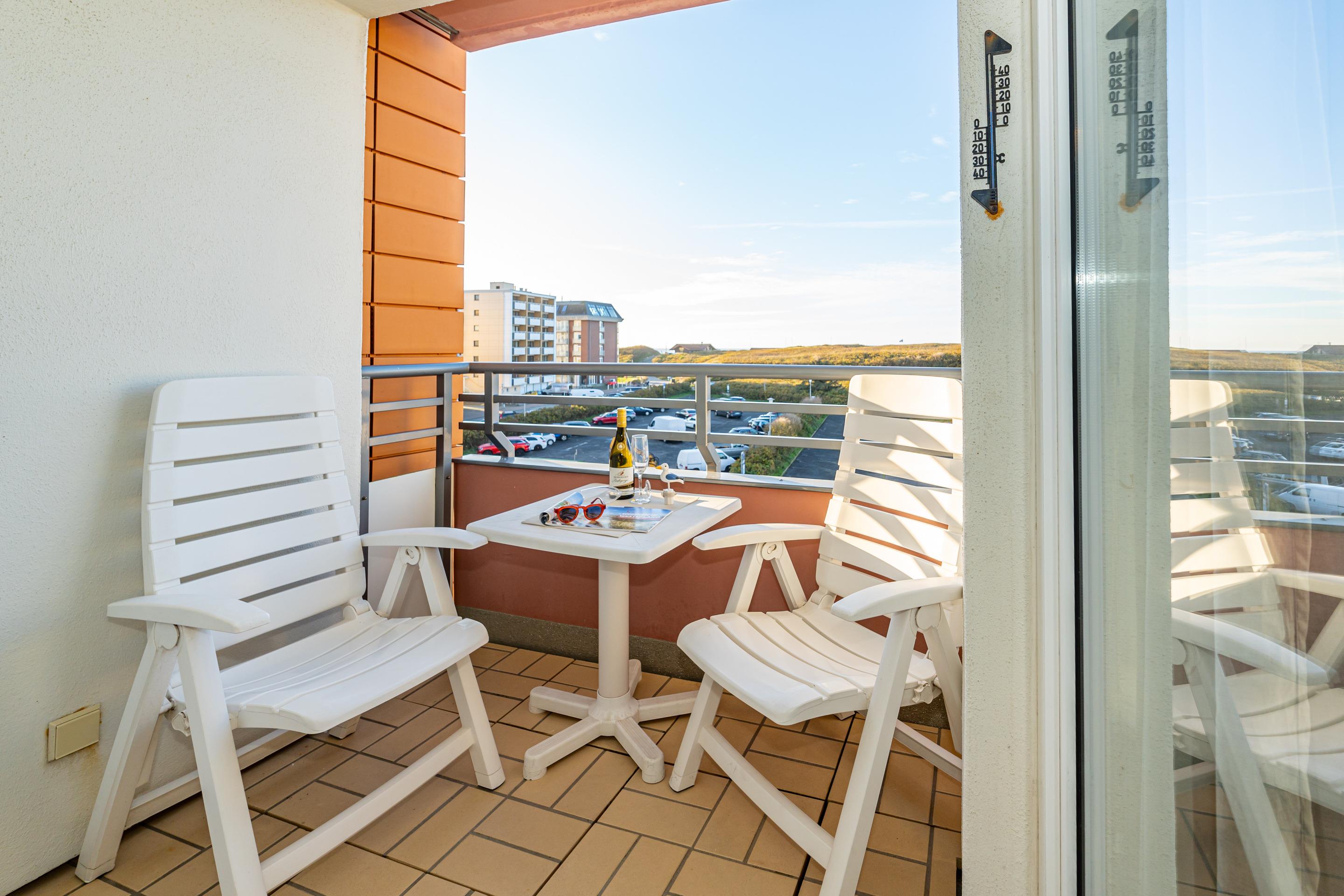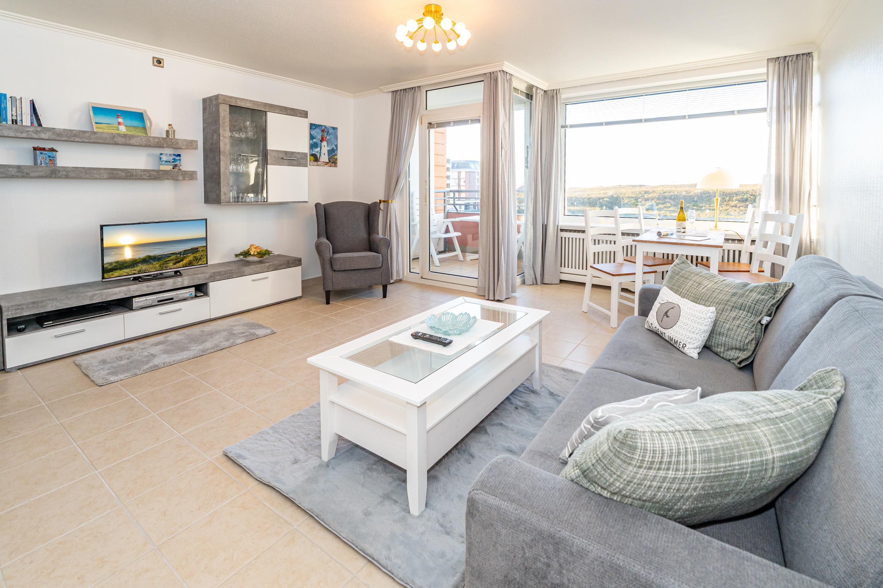 Moderne 2-Zimmer-Ferienwohnung mit Meerblick und Balkon in Westerland, ideal für bis zu 4 Personen.