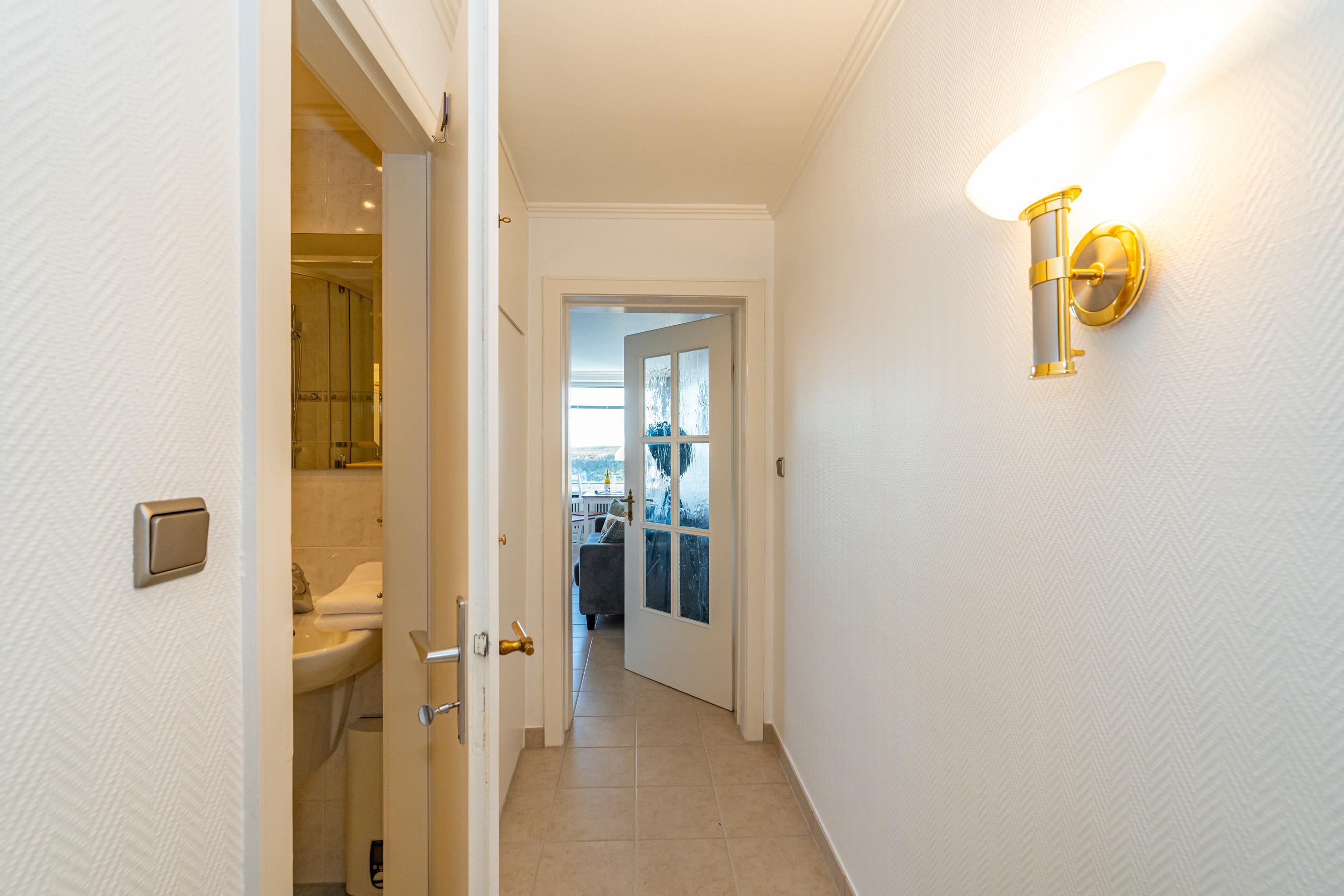Geschmackvoll eingerichtete 2-Zimmer-Nichtraucher-Ferienwohnung, ca. 54,5 qm, in der 3. Etage zur Westseite für max. 4 Personen mit Westbalkon und Meerblick (Nachmittagssonne, mit Balkonmöbeln und Auflagen).