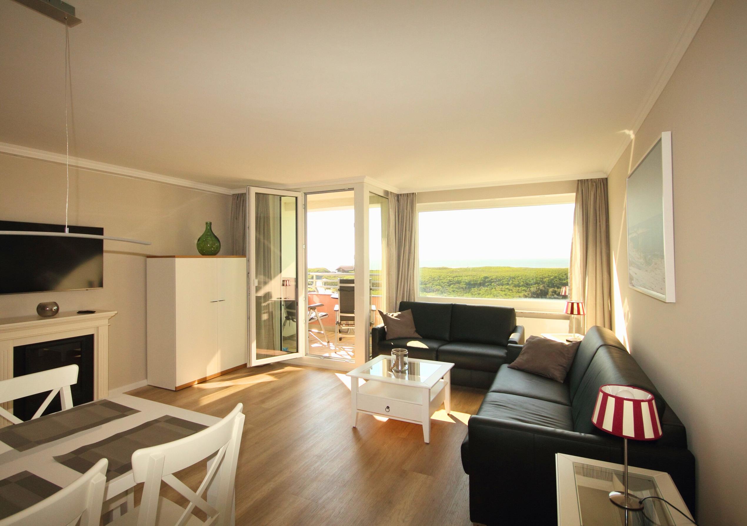 Exklusive Ferienwohnung in Westerland mit Meer- und Dünenblick, modernem Komfort und Balkon im 5. Stock.