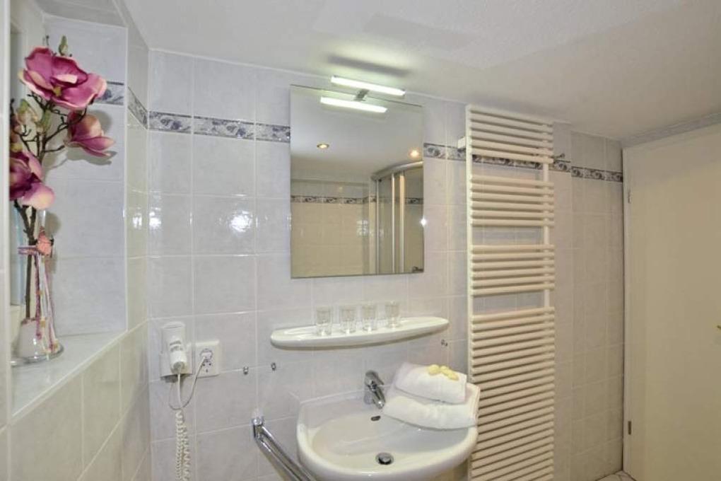 Das 1. geräumige Schlafzimmer (Vinylboden) hat ein gutes Doppelbett sowie ein schickes Wannenbad/WC.