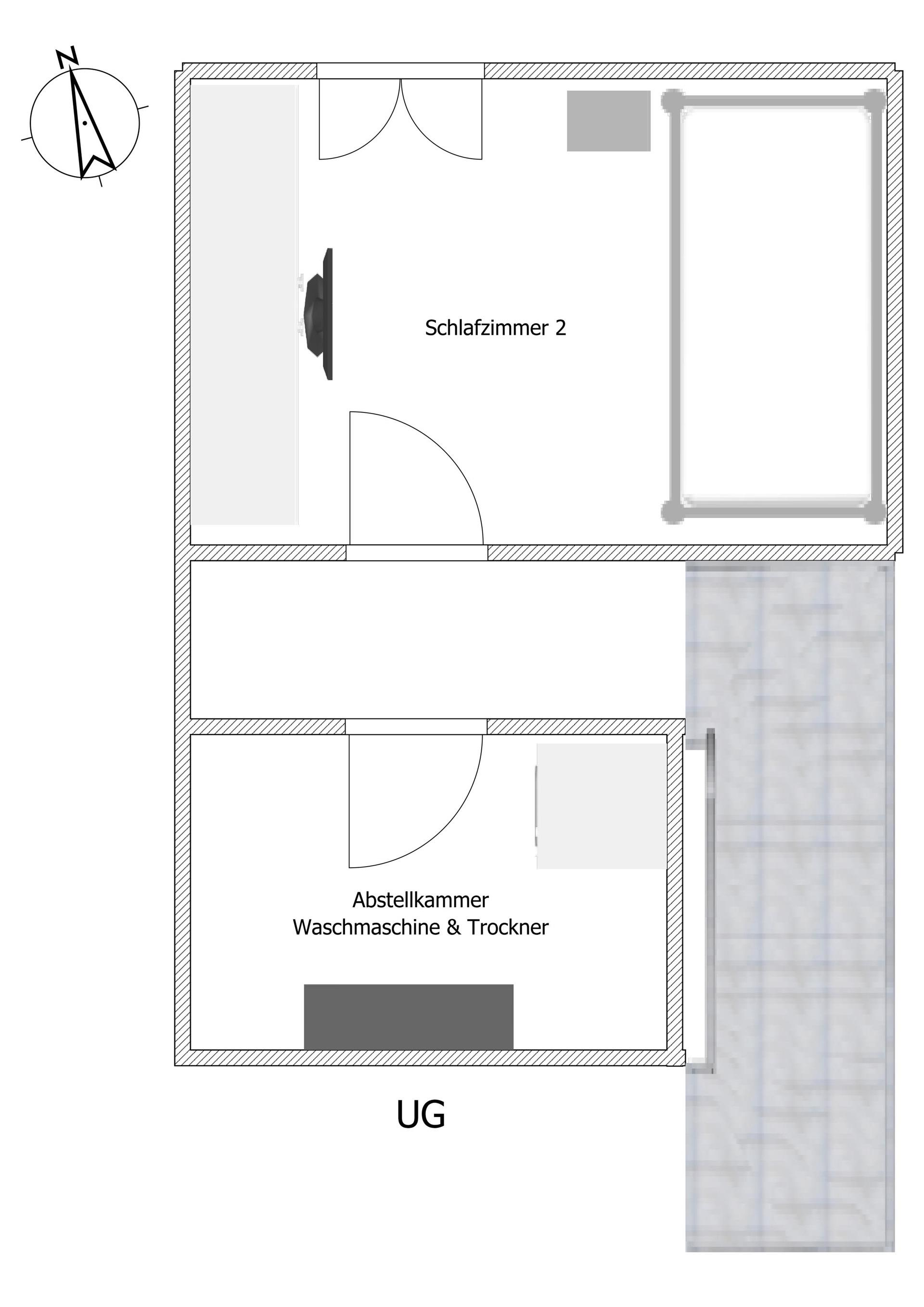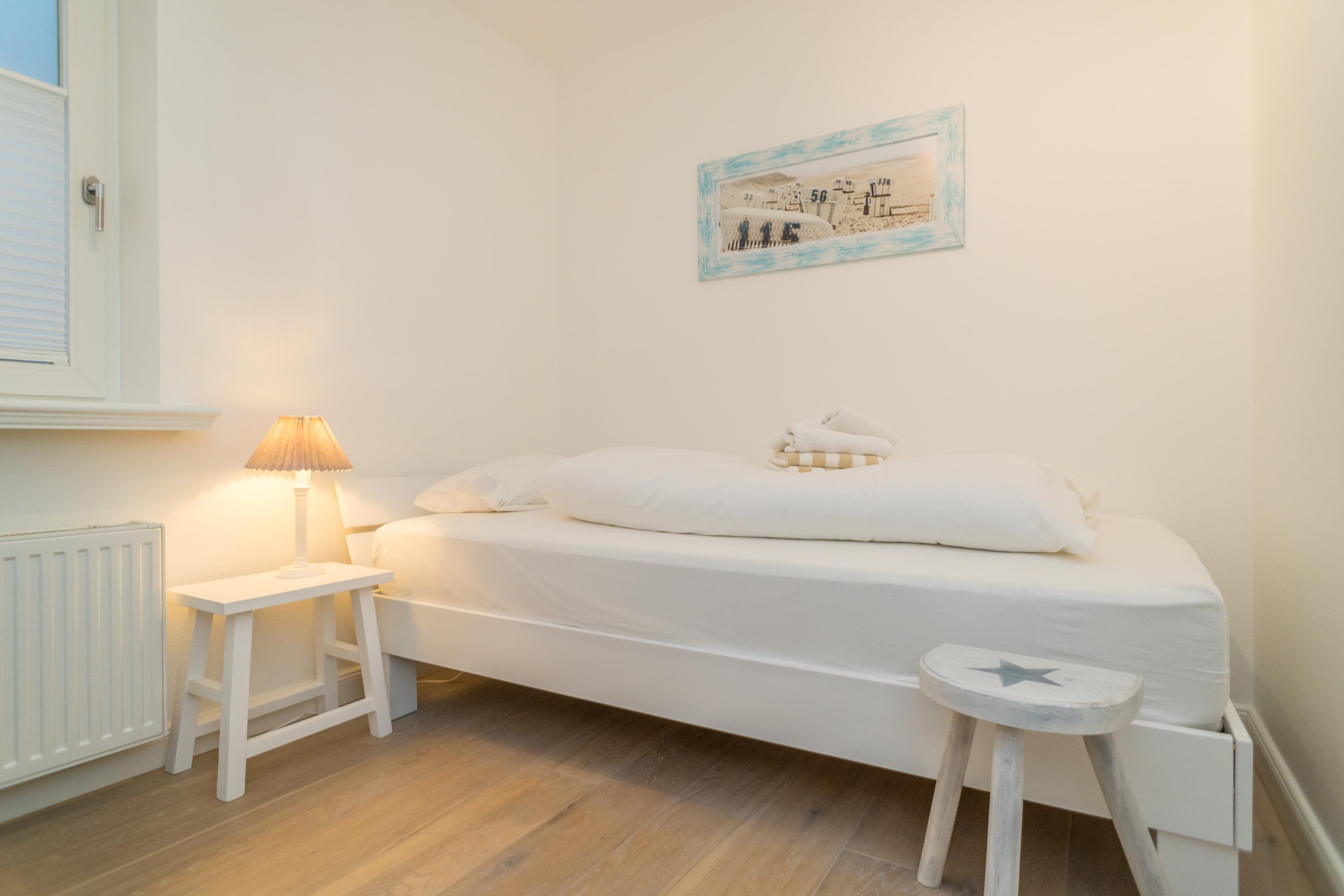 Das 2. Schlafzimmer hat ein Einzelbett (mit hochwertiger Matratze in 100x200) und ein separaten Abstellraum.