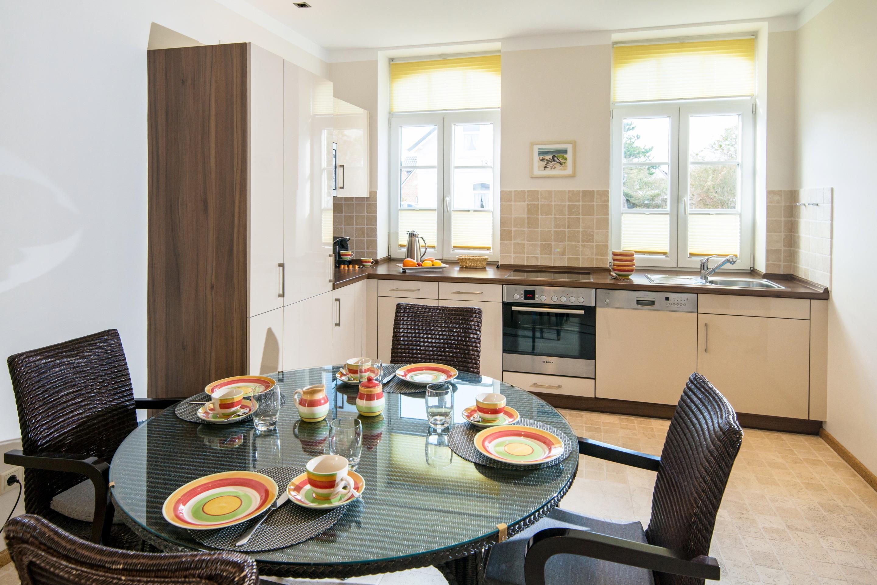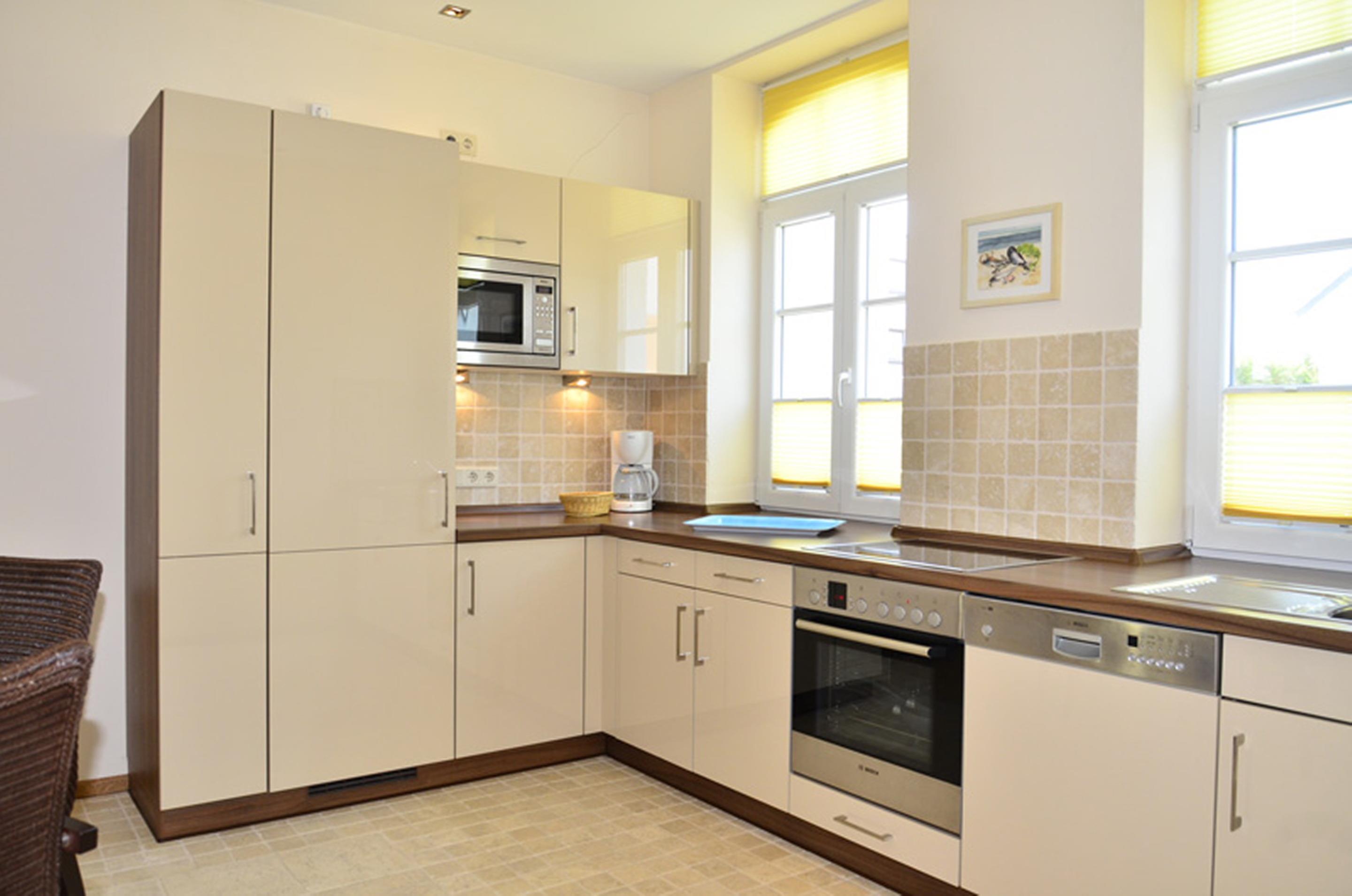 Die moderne Küche hat einen Geschirrspüler, eine Mikrowelle, ein 4-Platten-Ceranfeld, eine Nespresso-Maschine, einen Backofen und einen Kühlschrank mit 3-Sterne-Gefrierfach.
