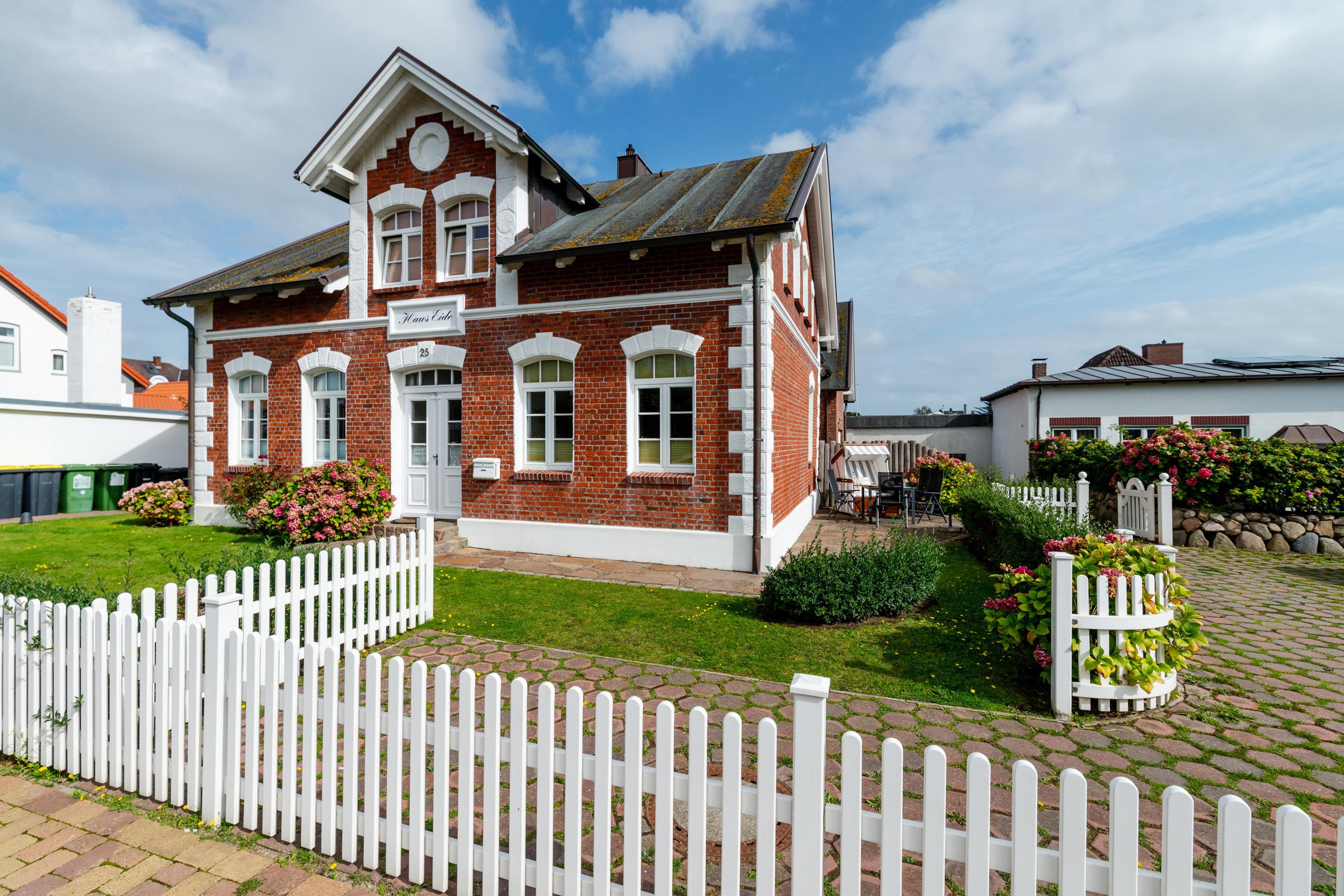 Die exklusive, kleine Nichtraucher-Ferienwohnungsanlage Haus Eide liegt im Süden Westerlands in bevorzugter Lage ca. 5 Gehminuten vom Badestrand, der Seepromenade und der Fußgängerzone mit allen Einkaufsmöglichkeiten entfernt. Das um die Jahrhundertwende im alten Bäderstil erbaute historische Haupthaus wurde sorgfältig entkernt, außen saniert und innen auf den neuesten Stand der Technik gebracht. Zusätzlich sind drei lichtdurchflutete Hausteile in hochwertiger Bauausführung und mit besonders stilvoller Innenausstattung entstanden. Sämtliche Ferienwohnungen haben einen exklusiven Standard, sind Allergiker-freundlich und haben einen eigen PKW-Stellplatz inklusive.