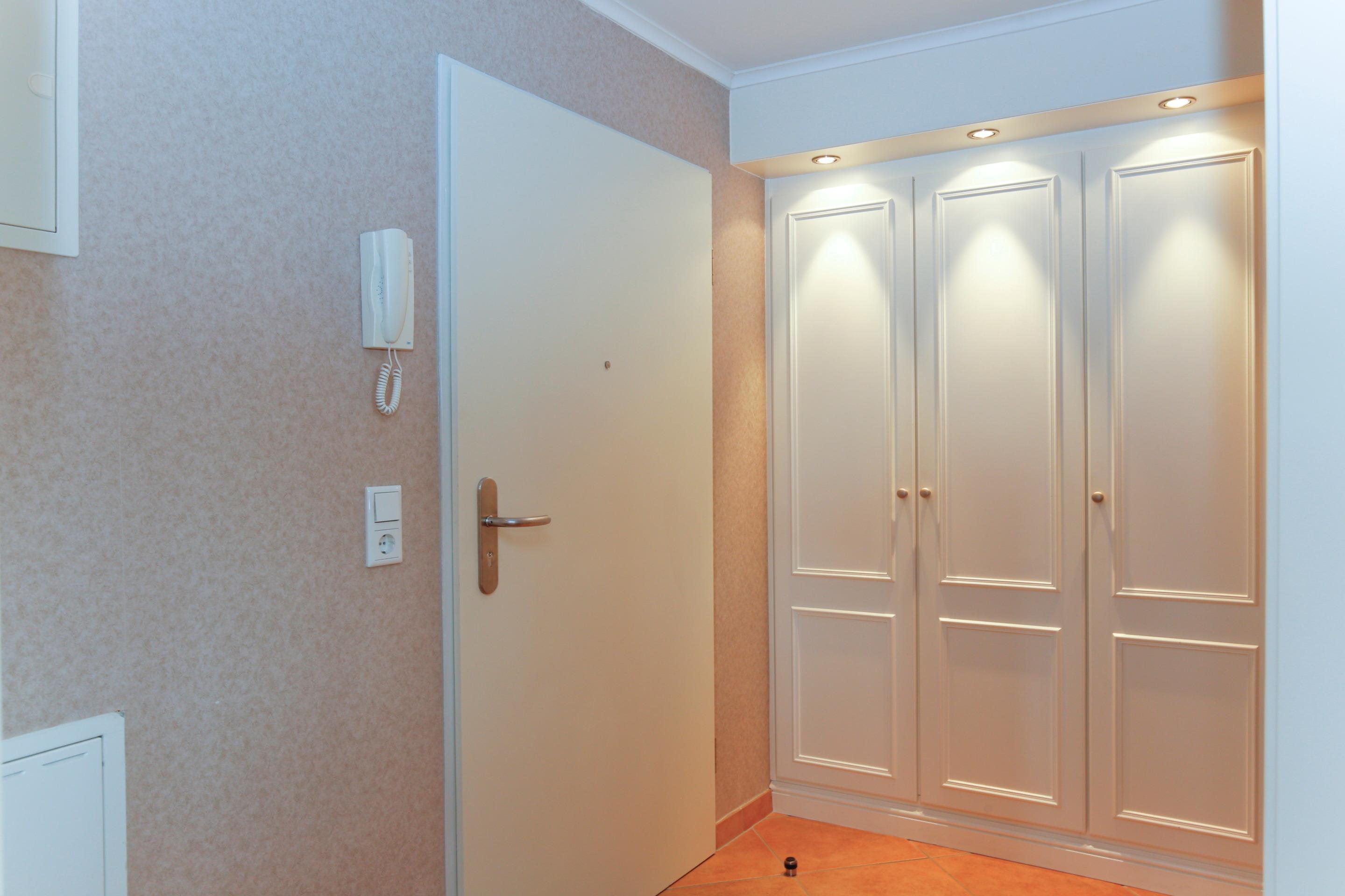 Vom Vorflur mit Garderobe gelangt man in das schicke Wohnzimmer (mit Austritt zum Balkon) und in das großzügige Duschbad/WC.