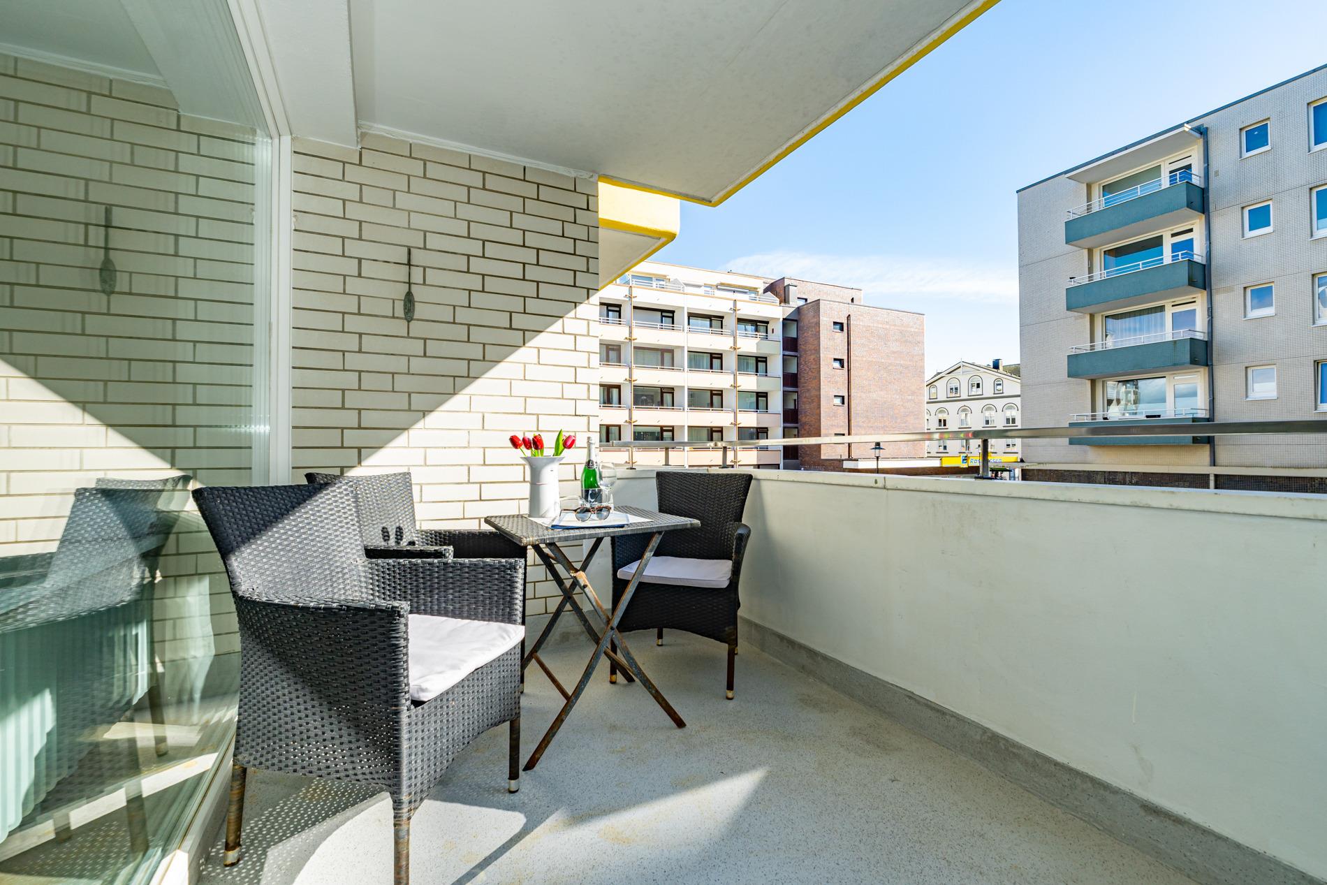 Moderne Ferienwohnung in Westerland mit Südbalkon und hochwertiger Ausstattung für erholsame Tage.