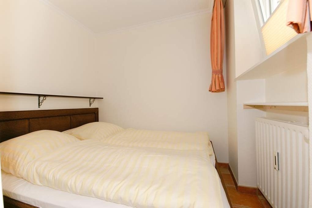 Vom Wohnzimmer gelangt man in das kleine Schlafzimmer mit Doppelbett mit Einzelmatratzen (0,80 x 2,00 m) für guten Schlafkomfort.