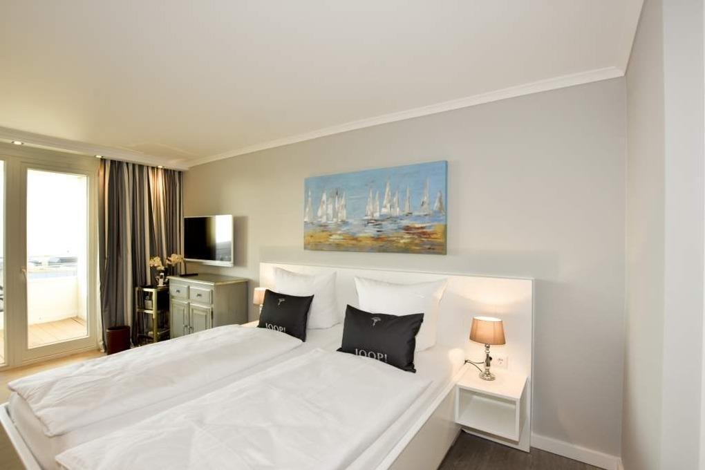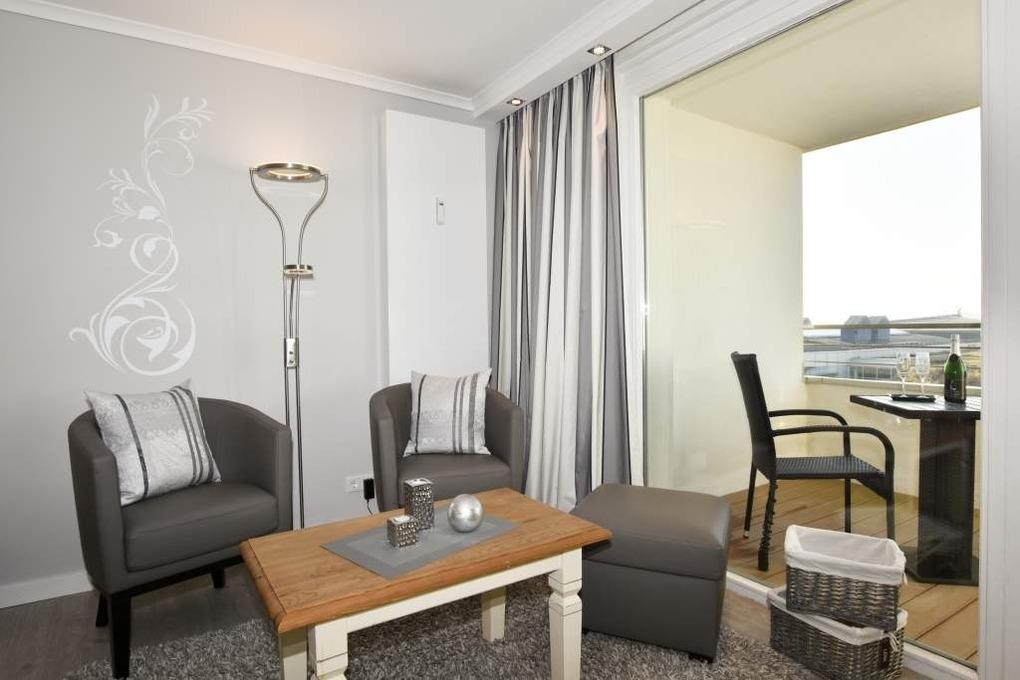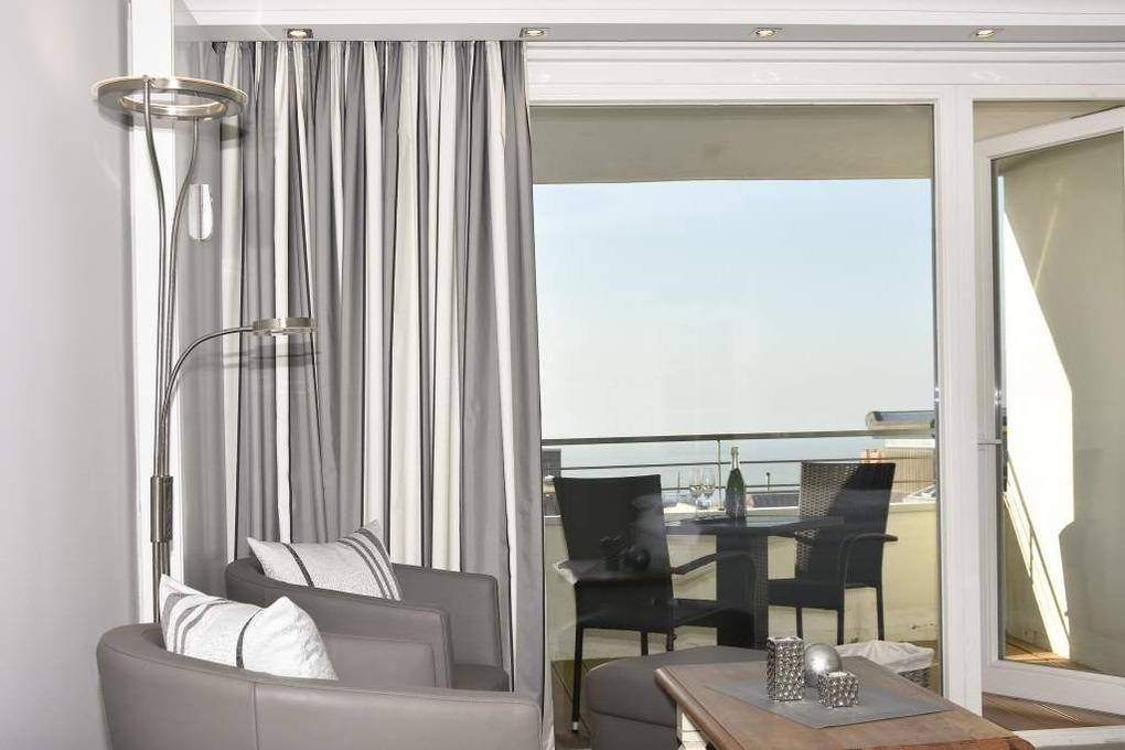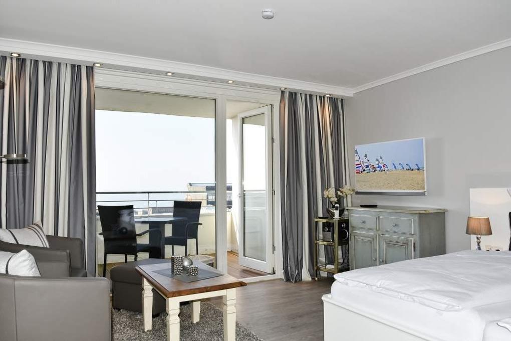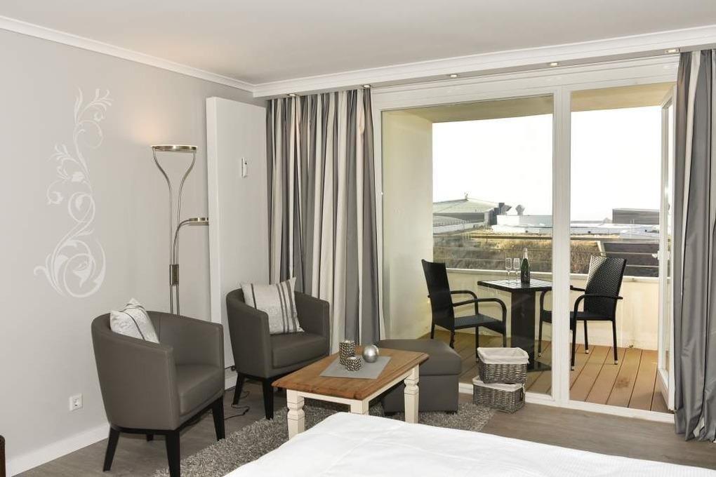 Diese hochwertig sanierte 1-Zimmer-Nichtraucher-Ferienwohnung (ca.?43?m²) in der 4. Etage besticht durch ihren stilvollen Komfort, ihre Großzügigkeit und den traumhaften Blick zur Nordsee. Die sonnige Westloggia mit Balkonmöbeln und Auflagen lädt nachmittags zum Entspannen und Genießen des Meerblicks ein – perfekt für Paare, die Wert auf stilvolles Ambiente legen.