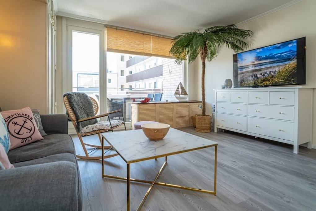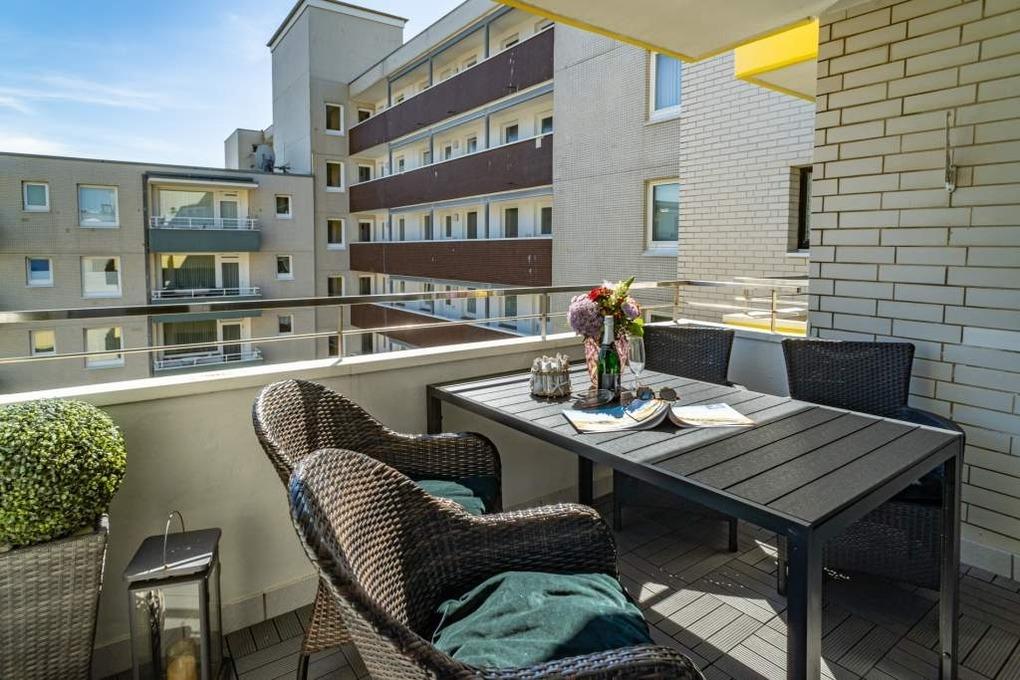 Moderne 2-Zimmer-Ferienwohnung mit Südbalkon und WLAN in Westerland, ideal für Familien und kleine Gruppen.
