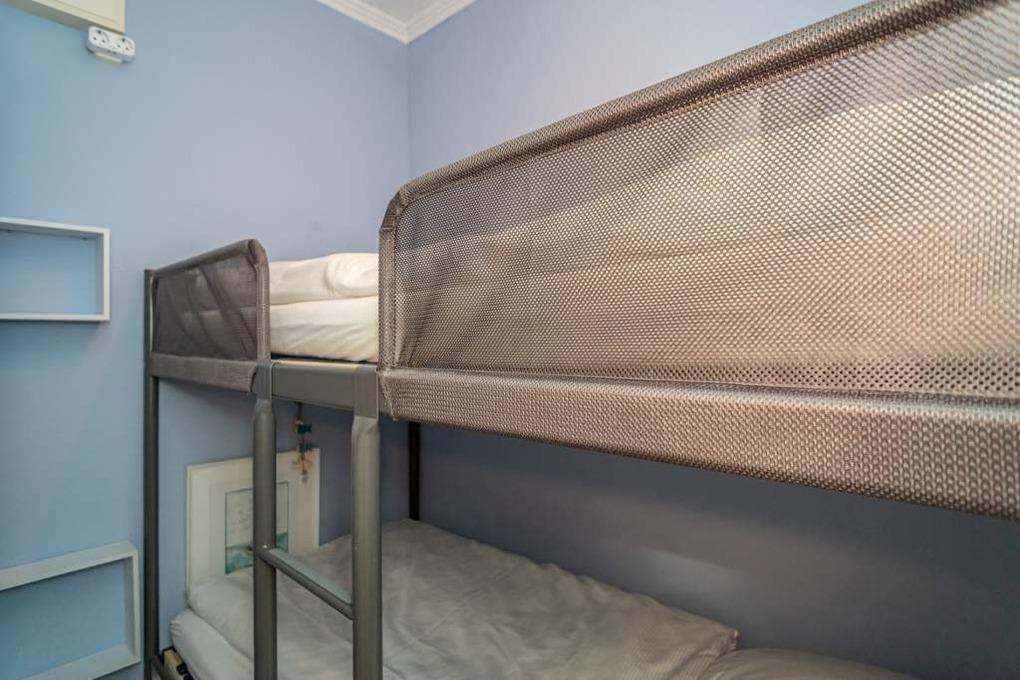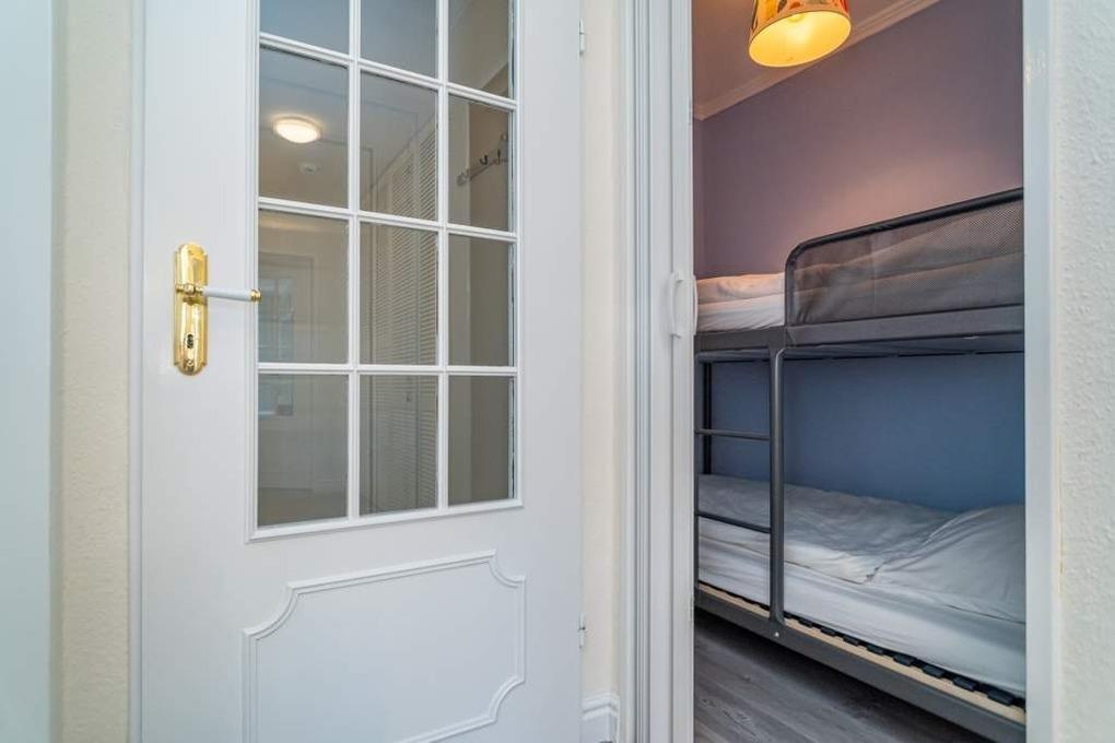 In der Schlafnische (mit Glasschiebetür von der Diele getrennt) befindet sich ein Etagenbett (je 0,90 m x 2,00 m).