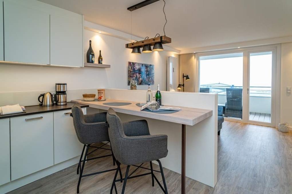 Vom gemütlichem Frühstückstresen können Sie direkt die Wellen der Nordsee beobachten.
