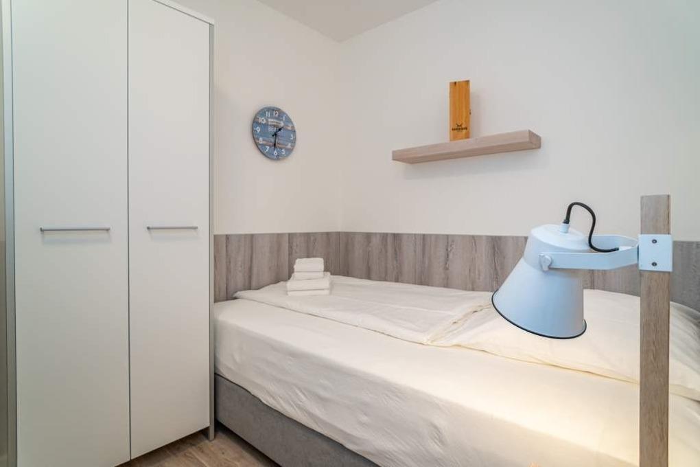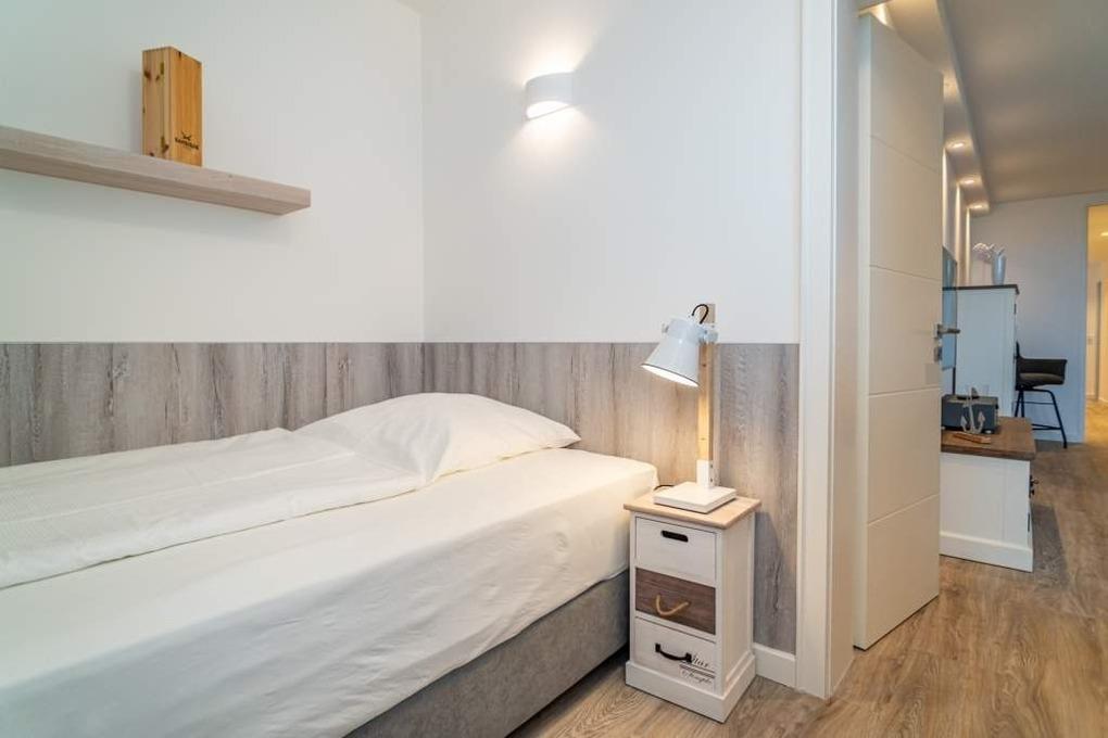 Vom Wohnzimmer hat man den Zugang in das 2.Schlafzimmer mit einem 1,20 x 2,00 m großem Bett, einem Kleiderschrank und einem Zimmersafe.