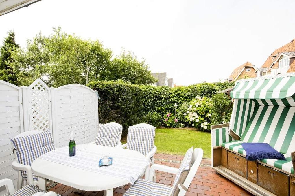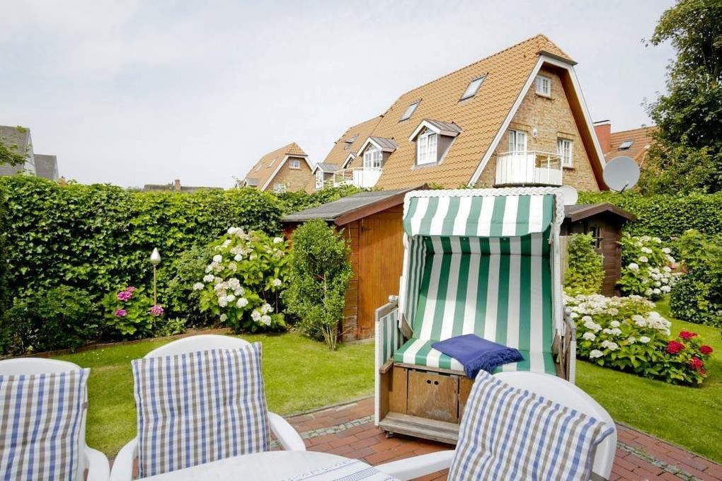 Ein besonderes Highlight ist die sonnige Terrasse mit eigenem Gartenanteil und Strandkorb – ideal zum Entspannen nach einem Tag am Meer.