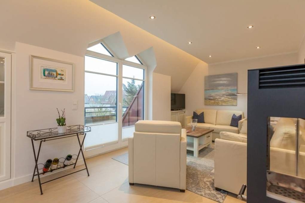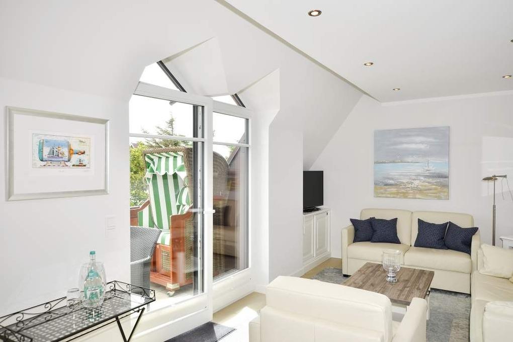 Luxuriöse 2-Zimmer-Maisonette-Nichtraucher-Ferienwohnung mit offener Empore, ca. 75 qm im 1. Obergeschoss, eine Südostloggia mit Strandkorb für 3 Personen