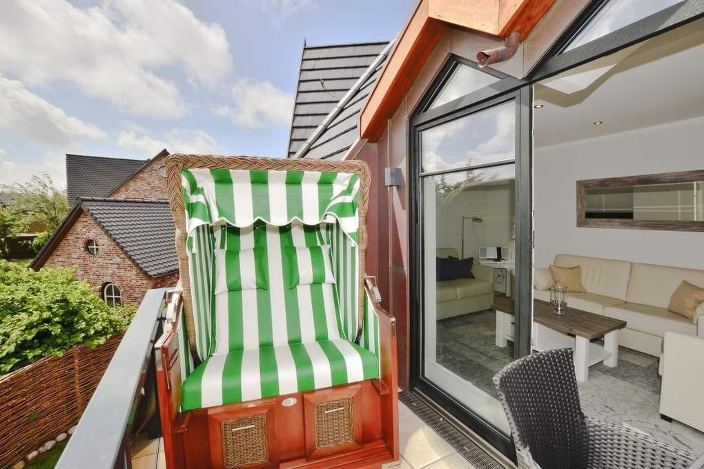Luxuriöse 5-Sterne-Ferienwohnung in Westerland mit Wellness, Fitnessbereich und Strandkorb auf der Loggia.