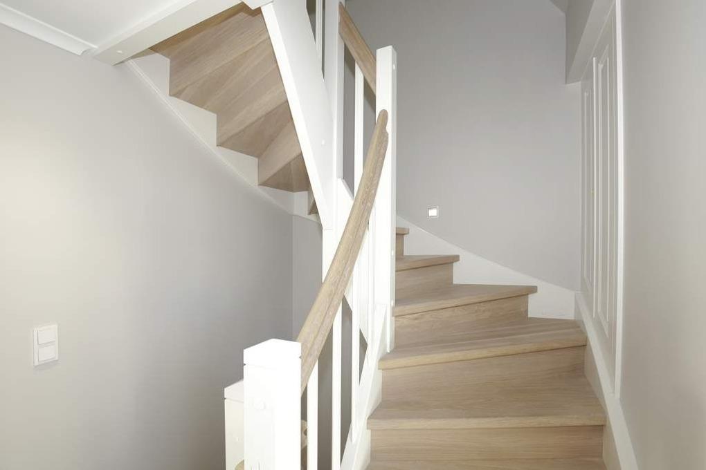 Im Erdgeschoss gelangt man über die Diele in das lichtdurchflutete Wohnzimmer mit Austritt zu Terrasse (mit Strandkorb und Terrassenmöbeln) und Garten.