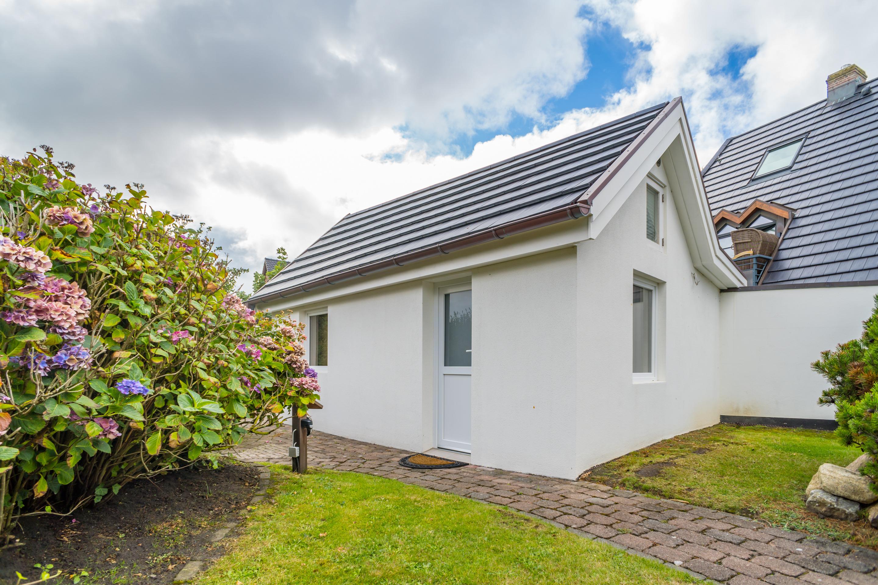 Eine in Glas eingefasste, windgeschützte Südterrasse befindet sich direkt am Haus, so dass man bis in die Abendstunden hinein fast wie einem Wintergarten draußen verweilen kann.