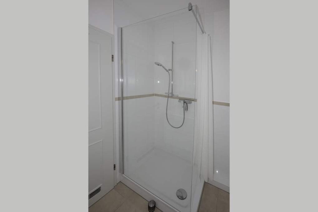 Das Bad verfügt über eine Dusche, ein WC und einen Waschtisch.