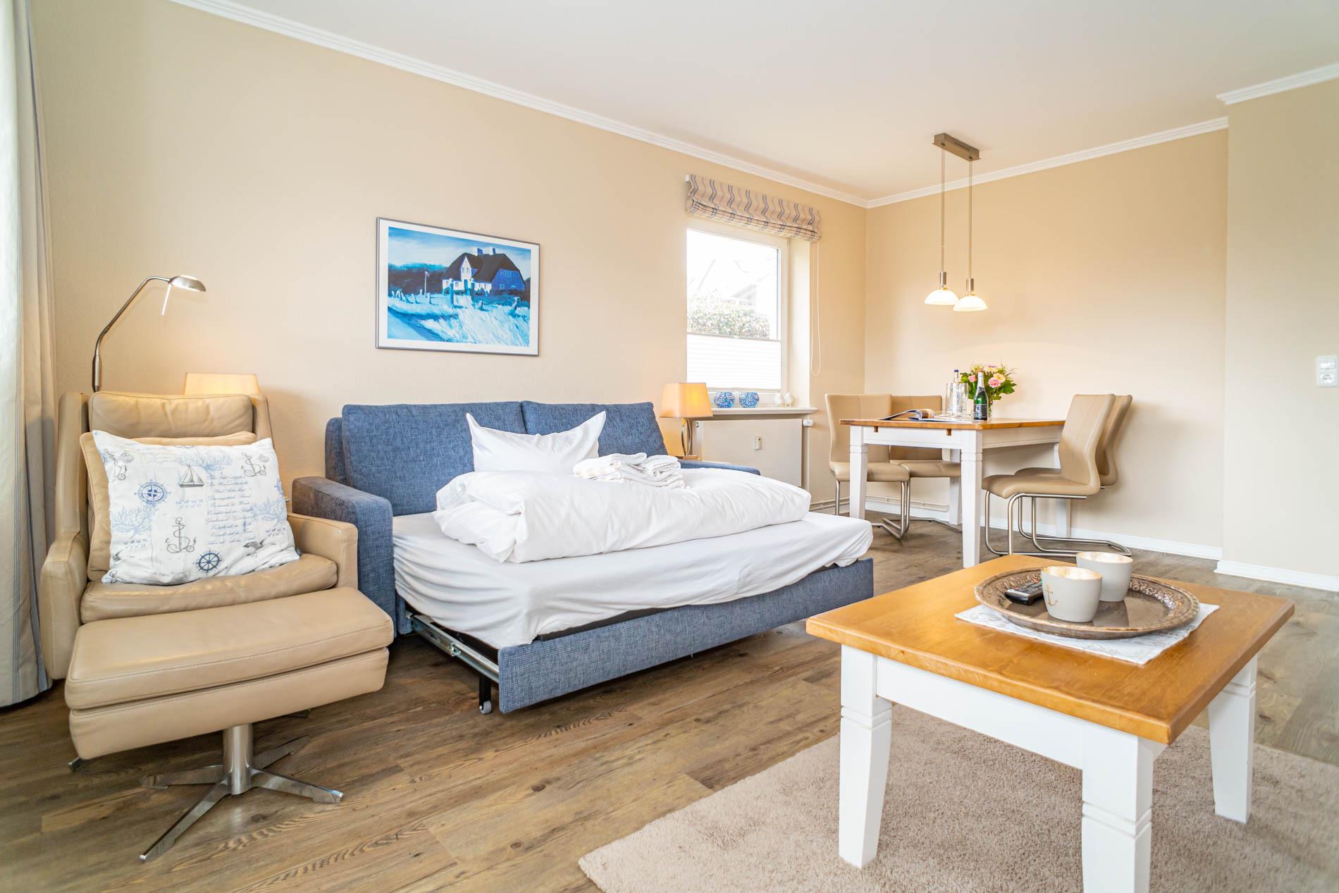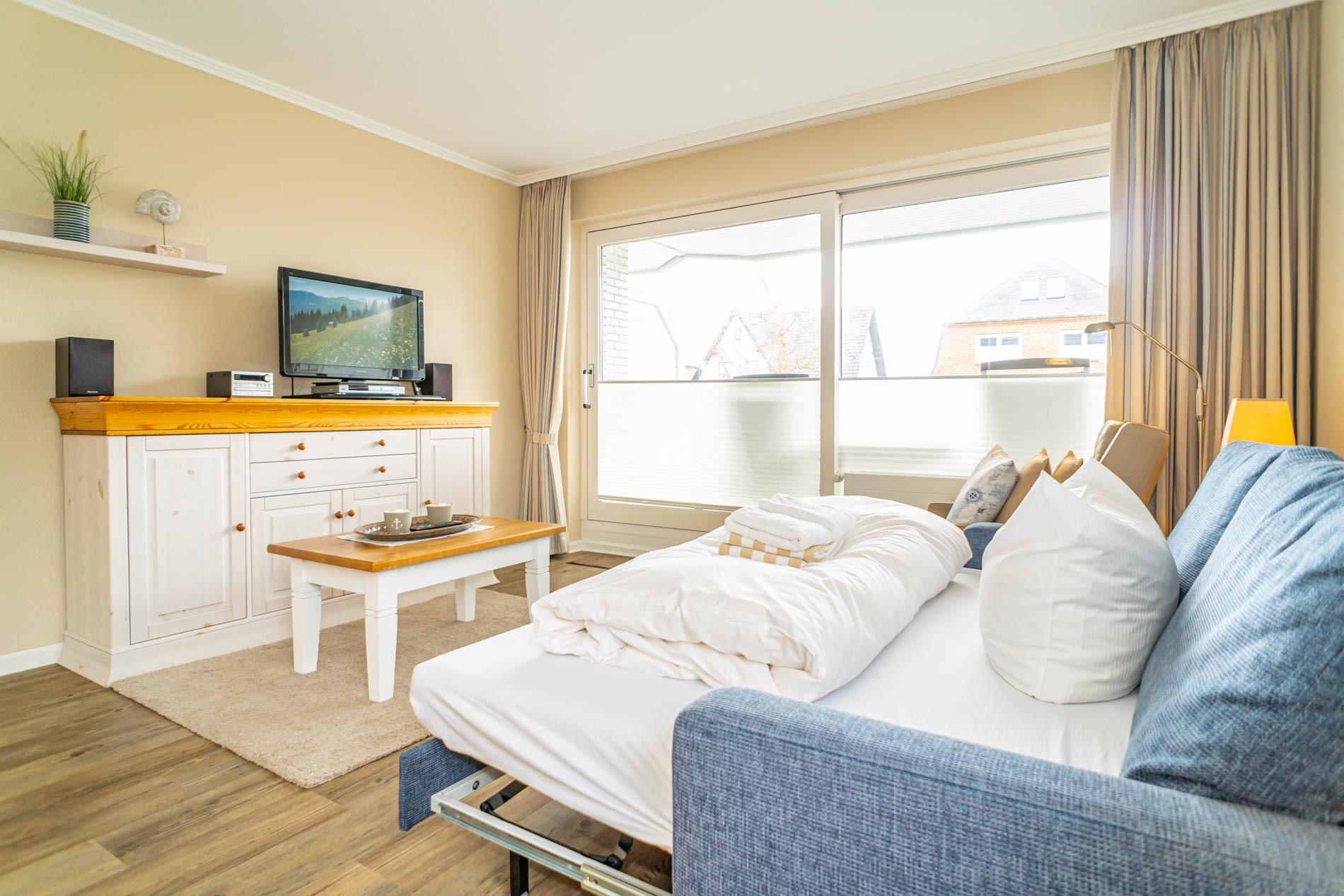 Moderne Nichtraucher-Ferienwohnung mit Balkon und WLAN in Westerland, ideal für erholsame Tage auf Sylt.